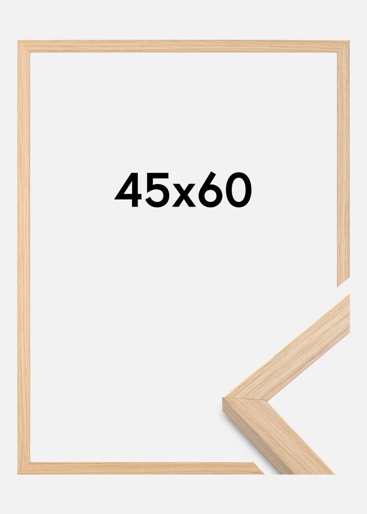 Grimsåker Ram Ek 22A 45x60 cm har innermåtten 45x60 cm medan listen mäter 1,7x2,25 cm.