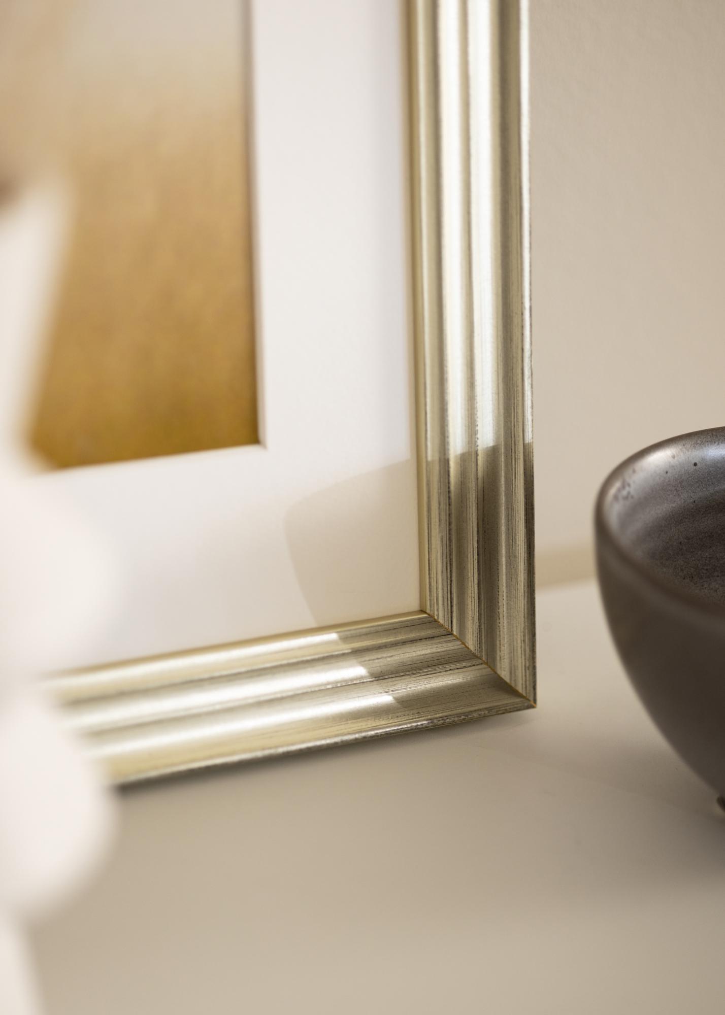 När du söker en påkostad antiksilver ram i retrostil är "Heby Silver" ett givet val. Med sin härliga silverfärg och gedigna profil är "Heby Silver" en av våra storsäljare till familjebilder och andra bilder som du tycker extra mycket om. Genom att du själv väljer storlek kan du exakt den storlek som du söker på din nya fina ram.