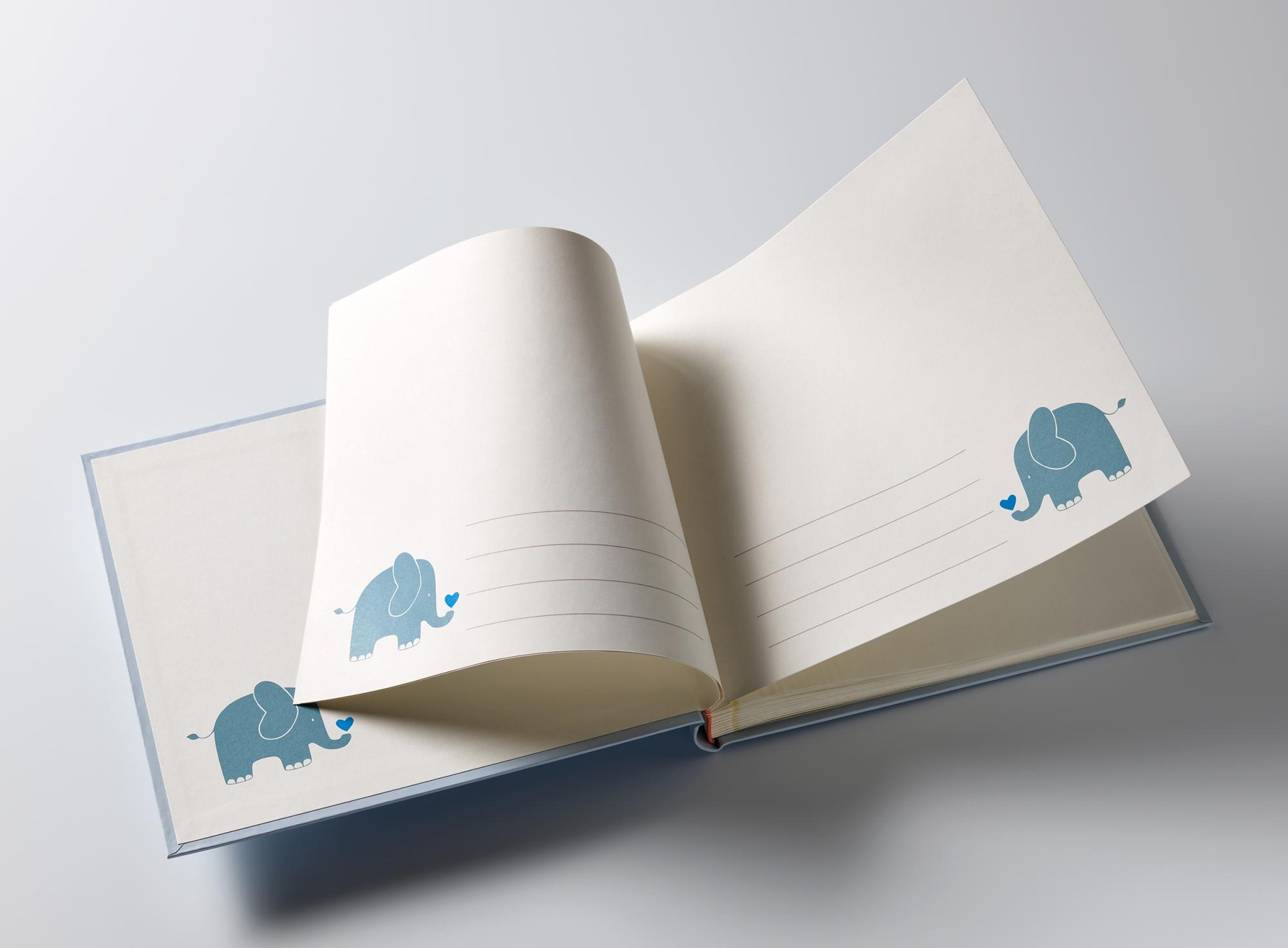 Stilrent och sött är två nyckelord som går hem hos de flesta nyblivna föräldrar. Här har vi ett fint babyalbum som kan beskrivas just så! På framsidan finns texten "Hello baby" tillsammans med ett grafiskt tryck föreställande en elefantunge som håller i ett hjärta. Inuti hittar du 50 stycken vita sidor som du kan skapa fina kollage på.