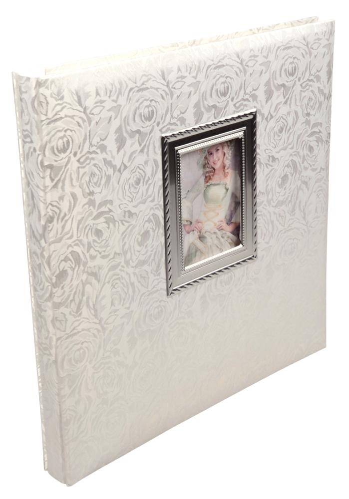 Vackert bröllopsalbum med självhäftande sidor. Med självhäftande sidor slipper du krånglet med lim och fotohörn. Bara öppna skyddsplasten och sätt dina bilder som du vill ha dom sätt därefter tillbaka skyddsplasten sen är allt klart! Albumet har ett stämningsfullt utseende med silverfärgade blommor på pärmarna. På albumets framsida kan du sätta din personliga prägel med en egen bild i måtten 7x9,5 cm.