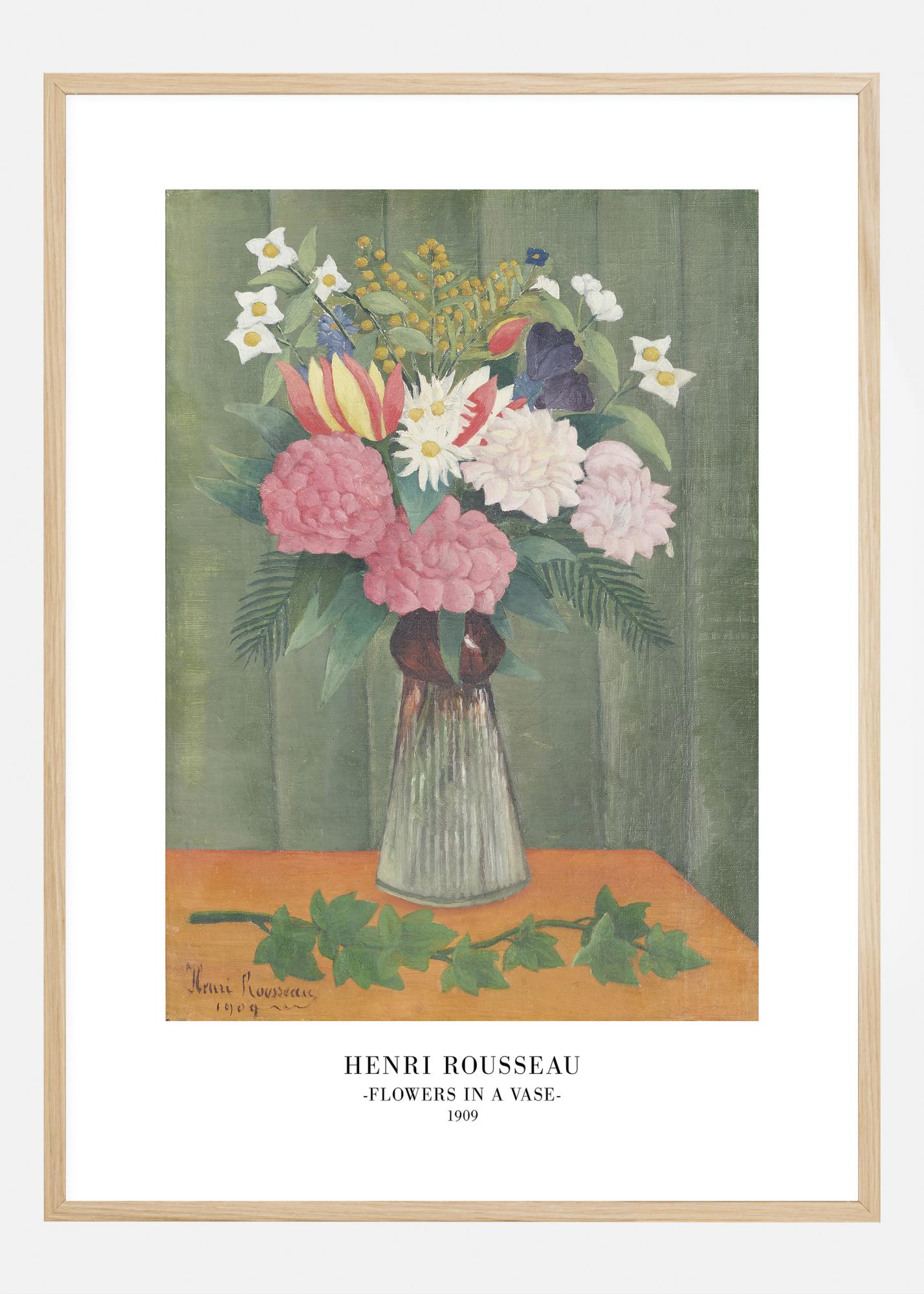 Denna poster av Henri Rousseaus "Flowers in a Vase" från 1909 visar en vacker och mångfärgad bukett blommor vars ljuva och detaljrika framställning för tankarna till lugnande sommardagar. Den är en idealisk print för dem som söker att införa en känsla av naturens skönhet och frid i sitt hem eller arbetsplats, och kan tillföra en klassisk charm till varje utrymme.
