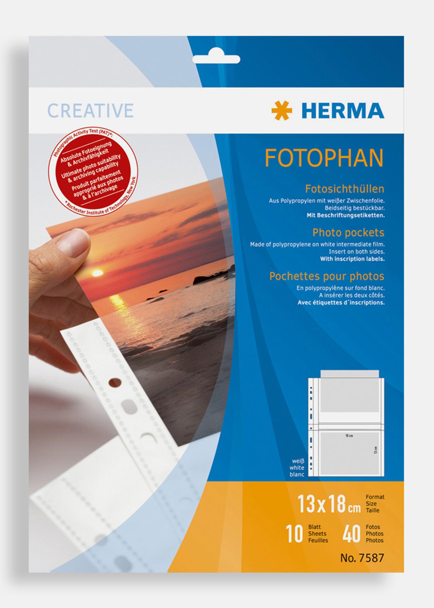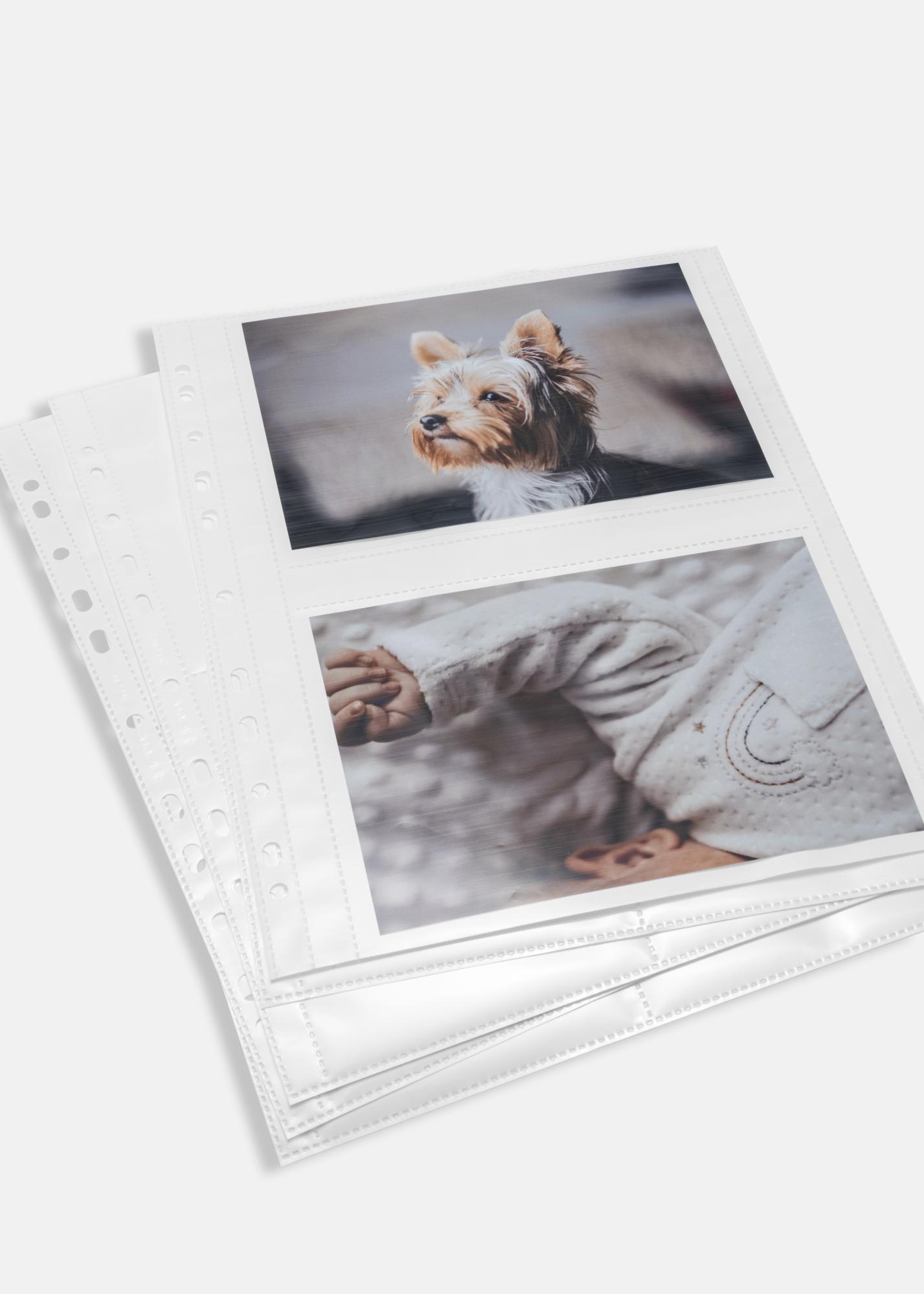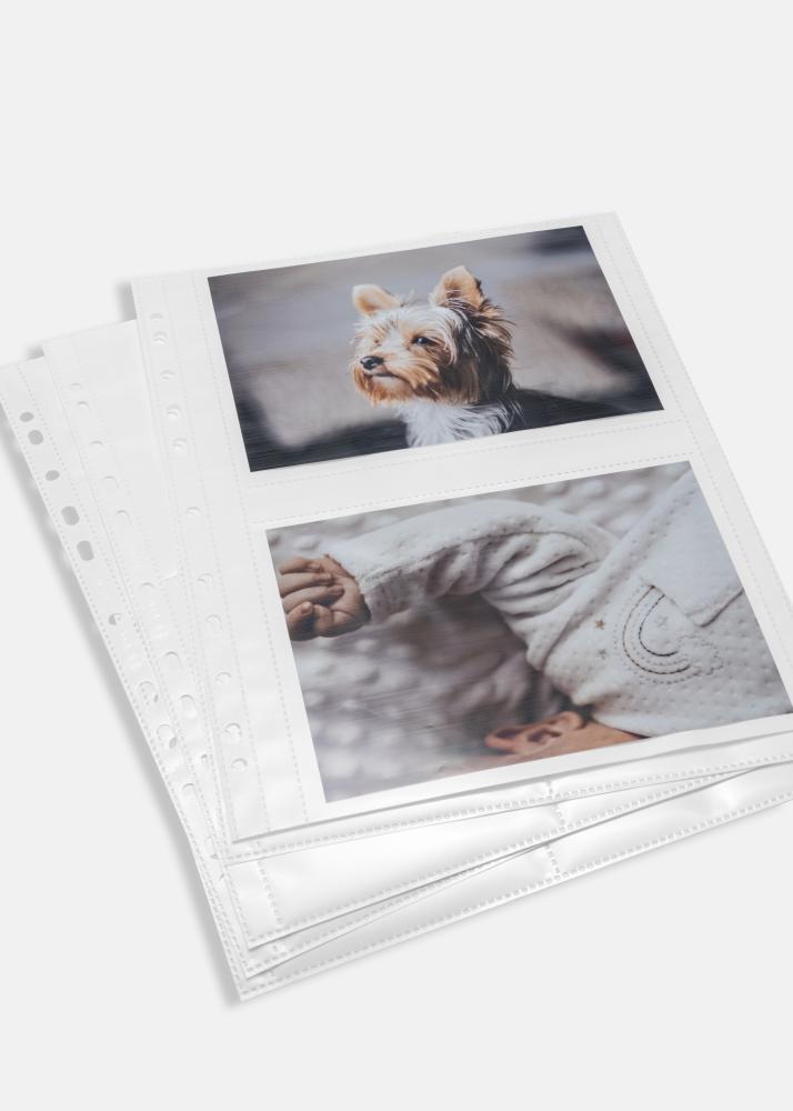 Dubbelsidiga vita fotofickor för bilder i formatet 13x18 cm (liggande format) alla fotofickor från Herma är alltid syrafria och garanterat oskadliga för dina bilder. Fotofickorna är anpassade för montering i ringpärmar av standardformat. Fotofickorna är PVC fri.
