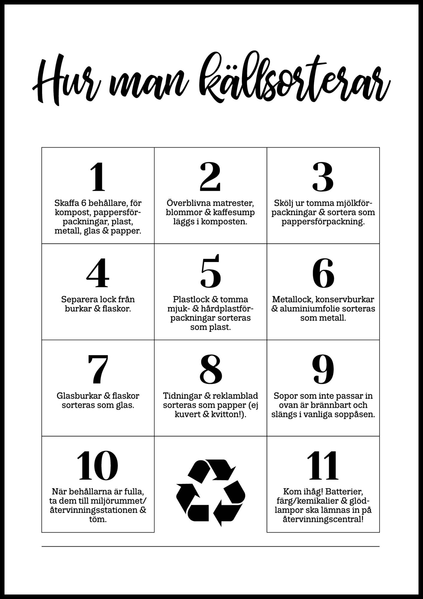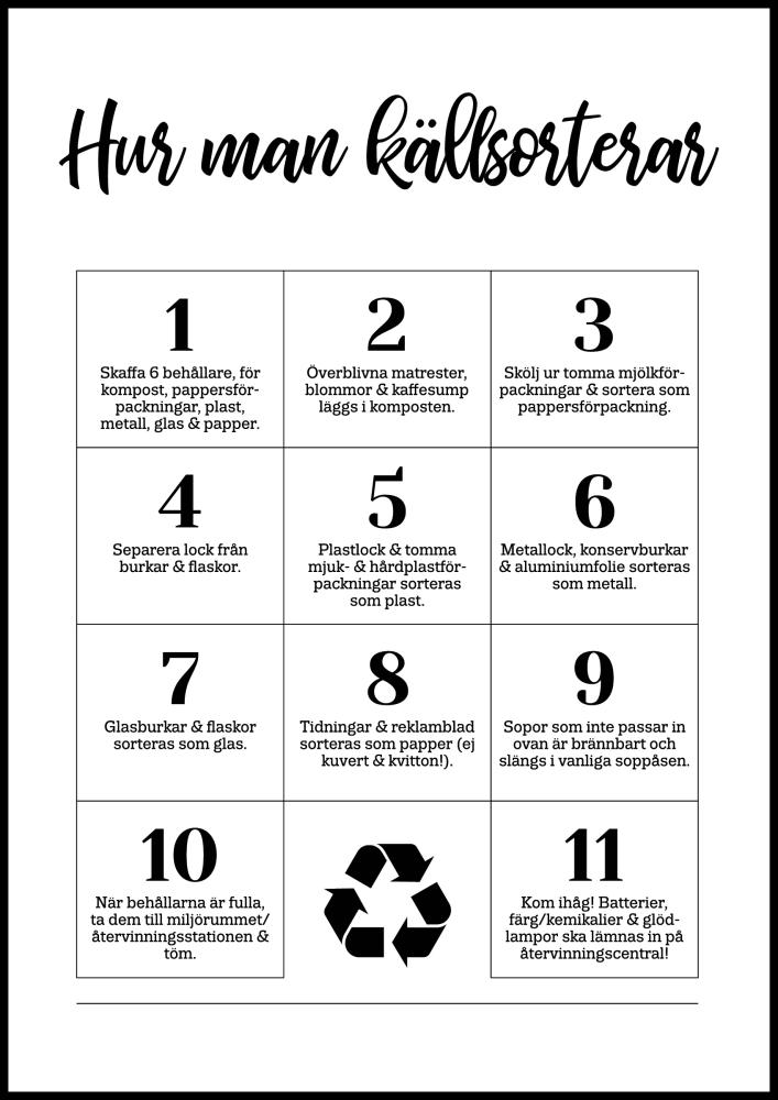 Hur Man Källsorterar - Vit Poster (30x40 cm)