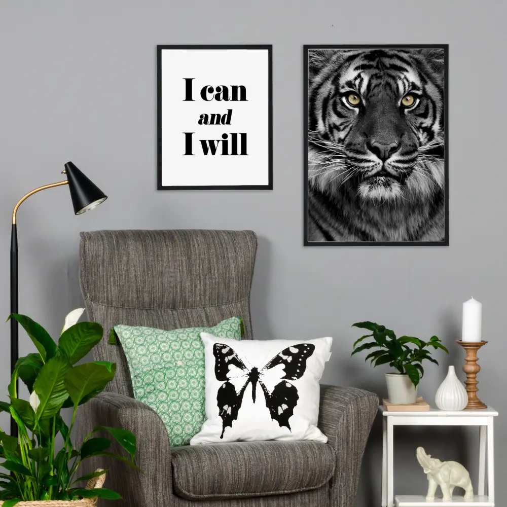 Låt inte någon stå i vägen för dina visioner – allra minst du själv! Denna härliga poster hängs upp i ett rum där du vistas varje dag. Affischen är vit med en svart, stilfull text som lyder ”I can and I will”. Passar perfekt för dig som behöver en liten spark där bak ibland. Komplettera med en tjusig ram och en matchande passepartout så blir den extra piffig. Finns i flera olika format och prisklasser.