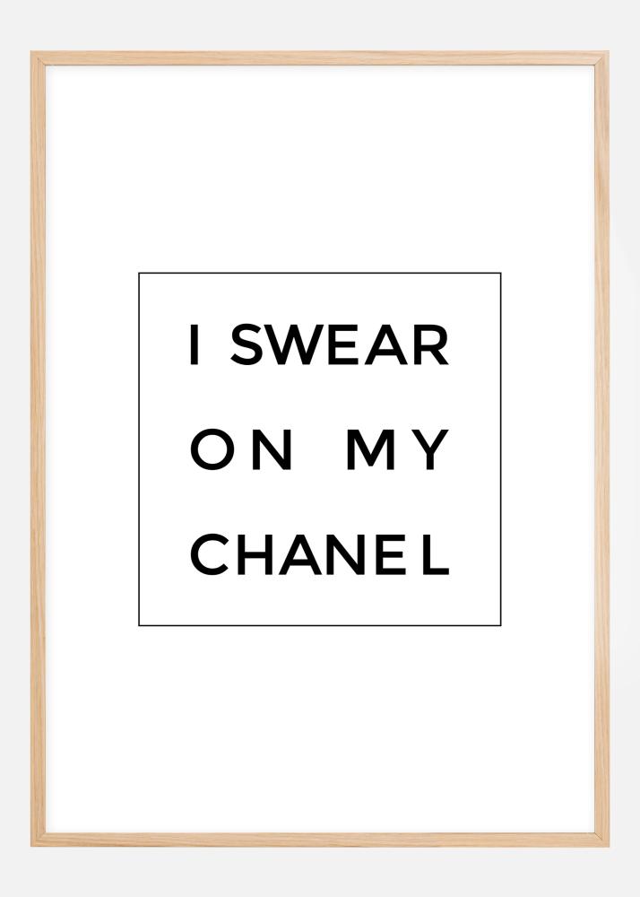Om du svär på din Chanel - ja då vet alla som verkligen känner dig att du menar allvar! Denna stilrena poster passar perfekt hemma hos dig som gärna omger dig med lyxiga ting. Affischen är vit med ett svart tryck i form av texten "I swear on my chanel" inuti en tunn, dekorativ kvadrat. Den svartvita designen gör sig utmärkt tillsammans med en snygg ram i din favoritfärg. Postern finns i flera olika storlekar så du hittar enkelt en som passar just ditt hem.