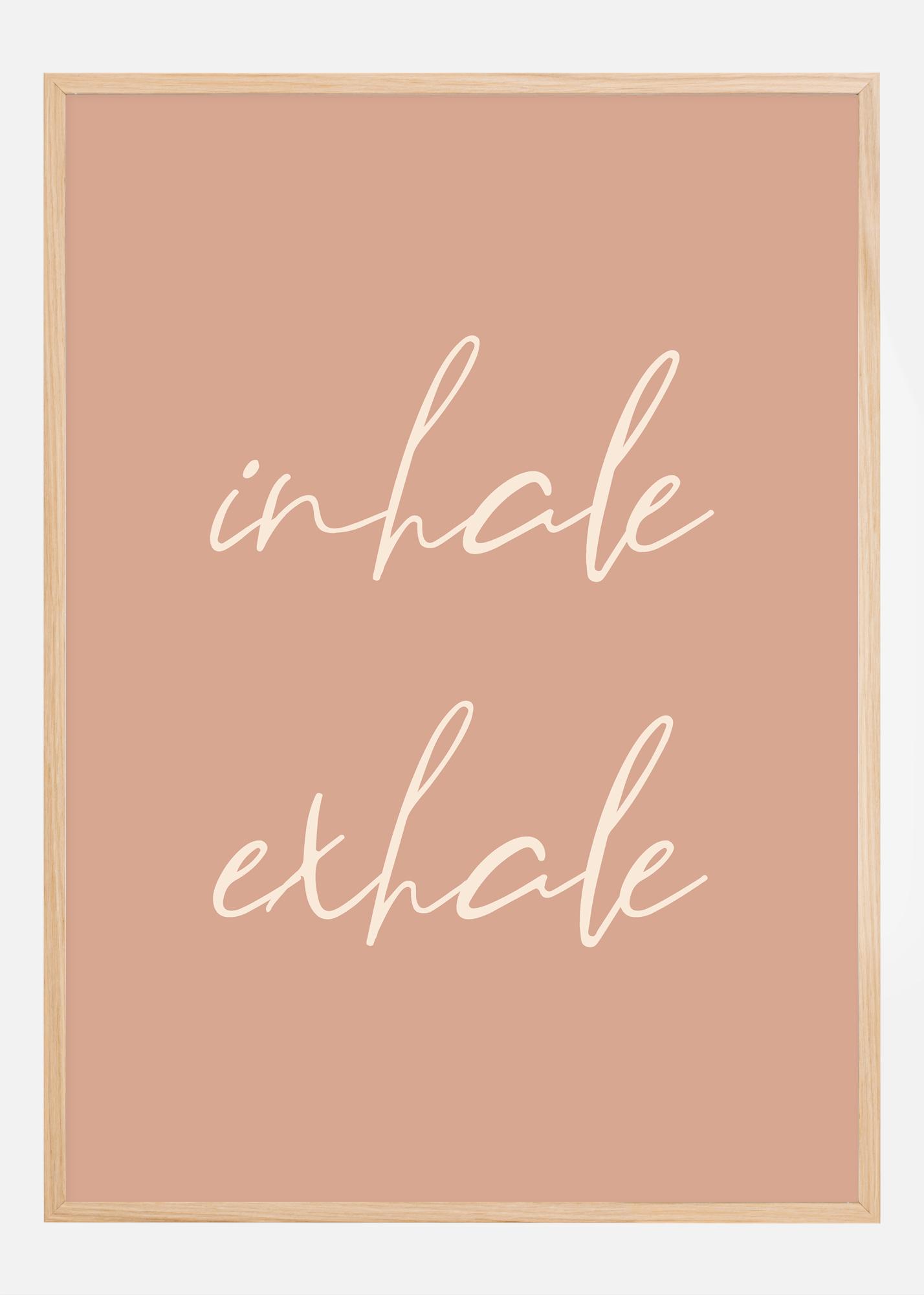 Denna rena och lugnande poster, med orden "inhale" och "exhale" elegant skrivna, inbjuder till stillhet och reflektion i vilket utrymme den än placeras. Den är en ständig påminnelse om andningens kraft och den inre friden som kan uppnås genom medveten närvaro. Den mjuka bakgrundsfärgen i dämpad rosa ger ett avslappnat och terapeutiskt intryck som kompletterar de flytande, handskrivna orden.
