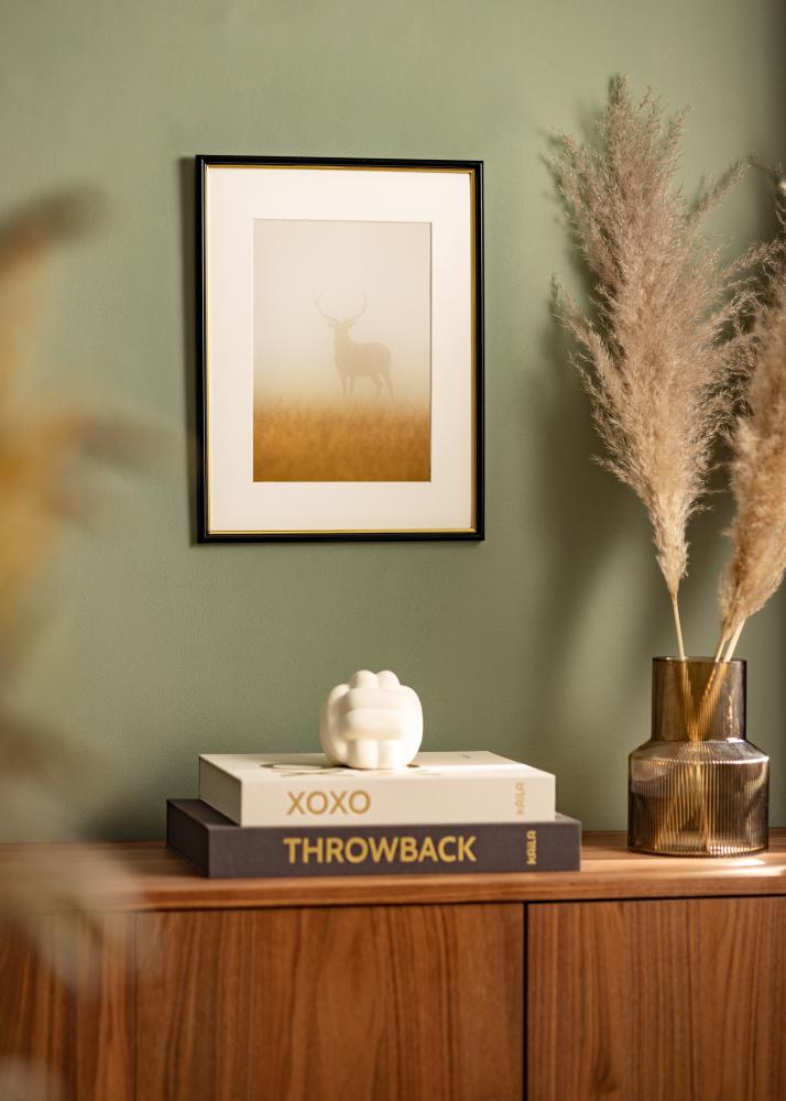 Jazz Svart har en klassisk design med en guldfärgad innerkant vilket ger den inramade bilden ett elegant utseende.