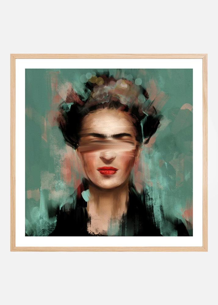 Ett spännande och anonymt porträtt målat med fylliga färger i sköna kontraster. En charmig poster i kvadradiskt format snyggt inramad av en passepartout i vitt, skapad av Gabriella Roberg.