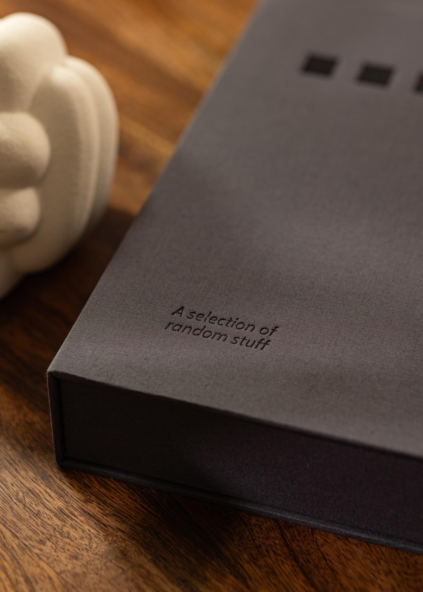 När ord är överflödiga och bilderna och minnena kan tala för sig själva, då kan man skaffa ett fotoalbum med titeln: ... Detta Coffee Table Photo Album har en annorlunda och lekfull – men samtidigt mycket stilren – design som gör det lika mycket till en snygg och trendig inredningsdetalj som till ett praktiskt fotoalbum. Fotoalbumet är elegant klätt i svart textil och den ordlösa titeln står glansigt tryckt på albumets framsida. Nere i albumets vänstra hörn finner du även ett tryck med undertiteln A selection of random stuff.