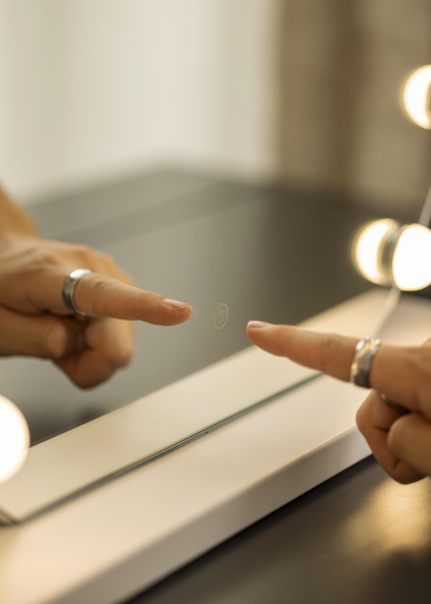 Upplev en touch av Hollywood-glamour med denna sminkspegel med ljus, som kombinerar elegans och funktionalitet på ett utsökt sätt. Sminkspegeln har en fräsch vit nyans och är utrustad med 12 dekorativa LED-glödlampor som avger ett varmt vitt sken på 3000K, vilket skapar idealiska förhållanden för makeup-applicering. Ljuset aktiveras och justeras enkelt med en touch-knapp, och eftersom det använder LED-teknologi, är det både energisnålt och ger ett naturligt ljus.