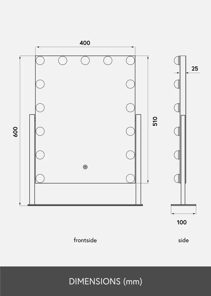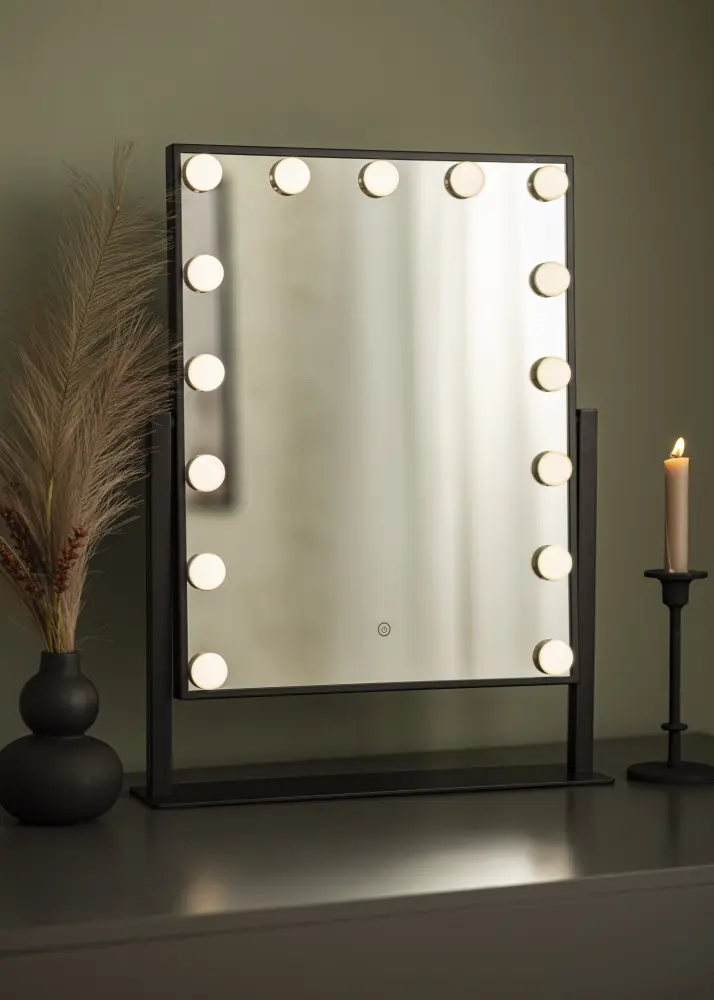 Den här snygga sminkspegeln med 15 LED glödlampor och stor spegelyta är den perfekta spegeln för applicering av makeup! Den stilfulla Hollywood spegeln går i en svart nyans och LED lamporna ramar snyggt in spegelytan. Sminkspegeln går att vinkla så att du kan spegla dig från olika vinklar och enkelt lyckas med din sminkning!