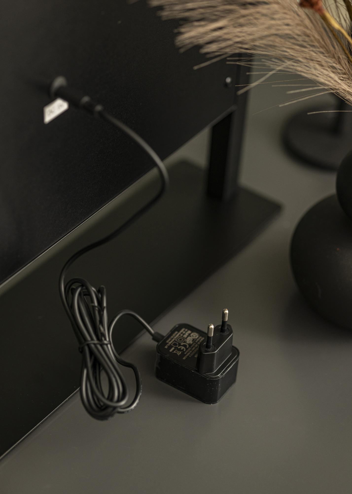 5V adapter medföljer. Elanslutning med stickpropp.