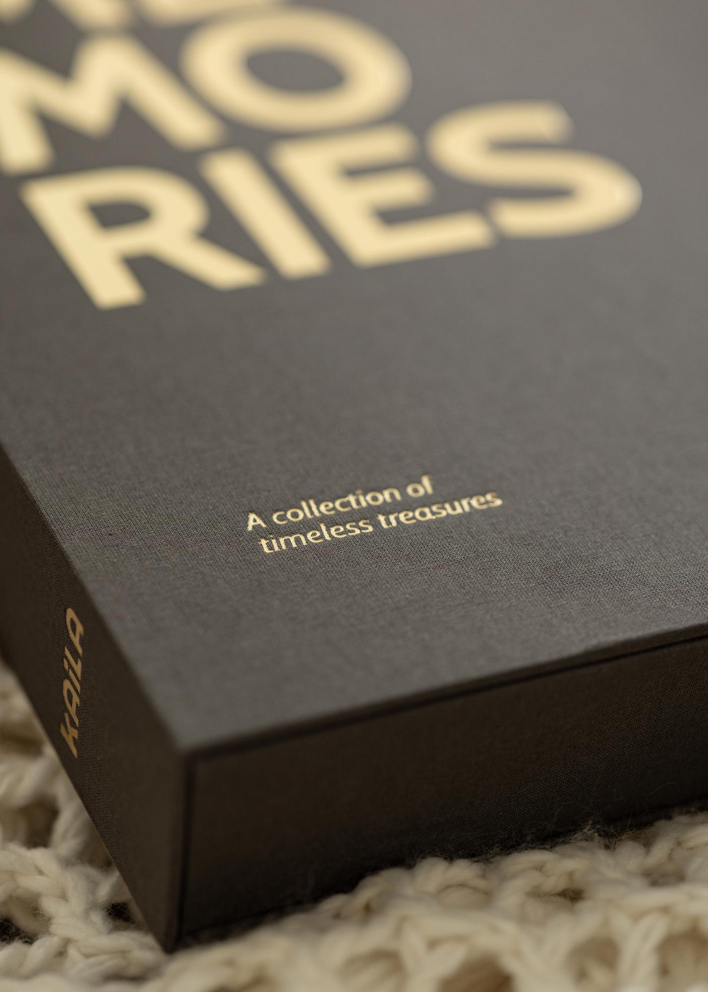 Snyggt guldtryck med albumtiteln: MEMORIES