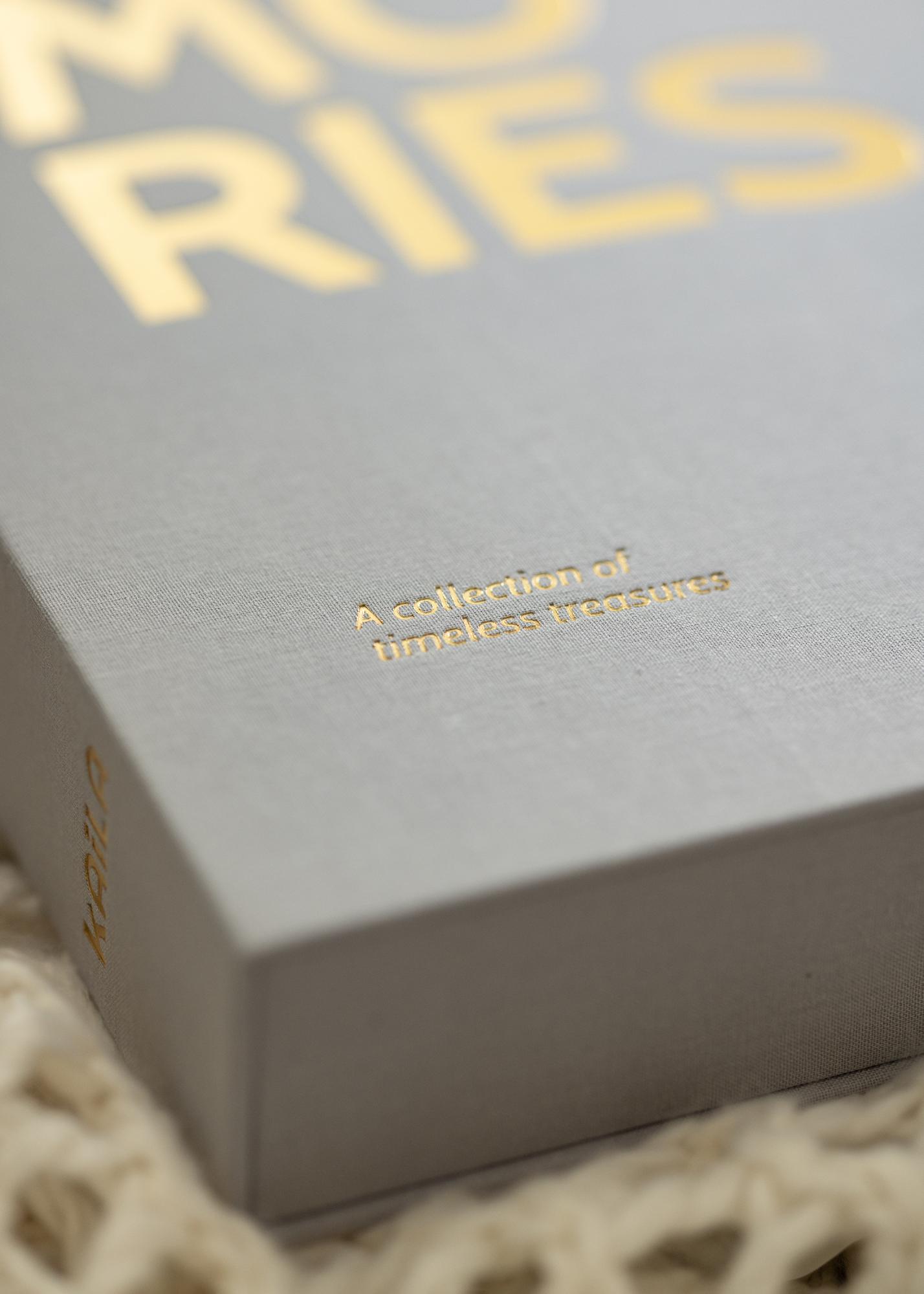 Albumet är stilfullt klätt i grå textil och på dess framsida och albumrygg sitter ett guldfärgat tryck med texten ”MEMORIES”. Albumtiteln kompletteras även med undertiteln ”A collection of timeless treasures” som står tryckt nere i det vänstra hörnet.