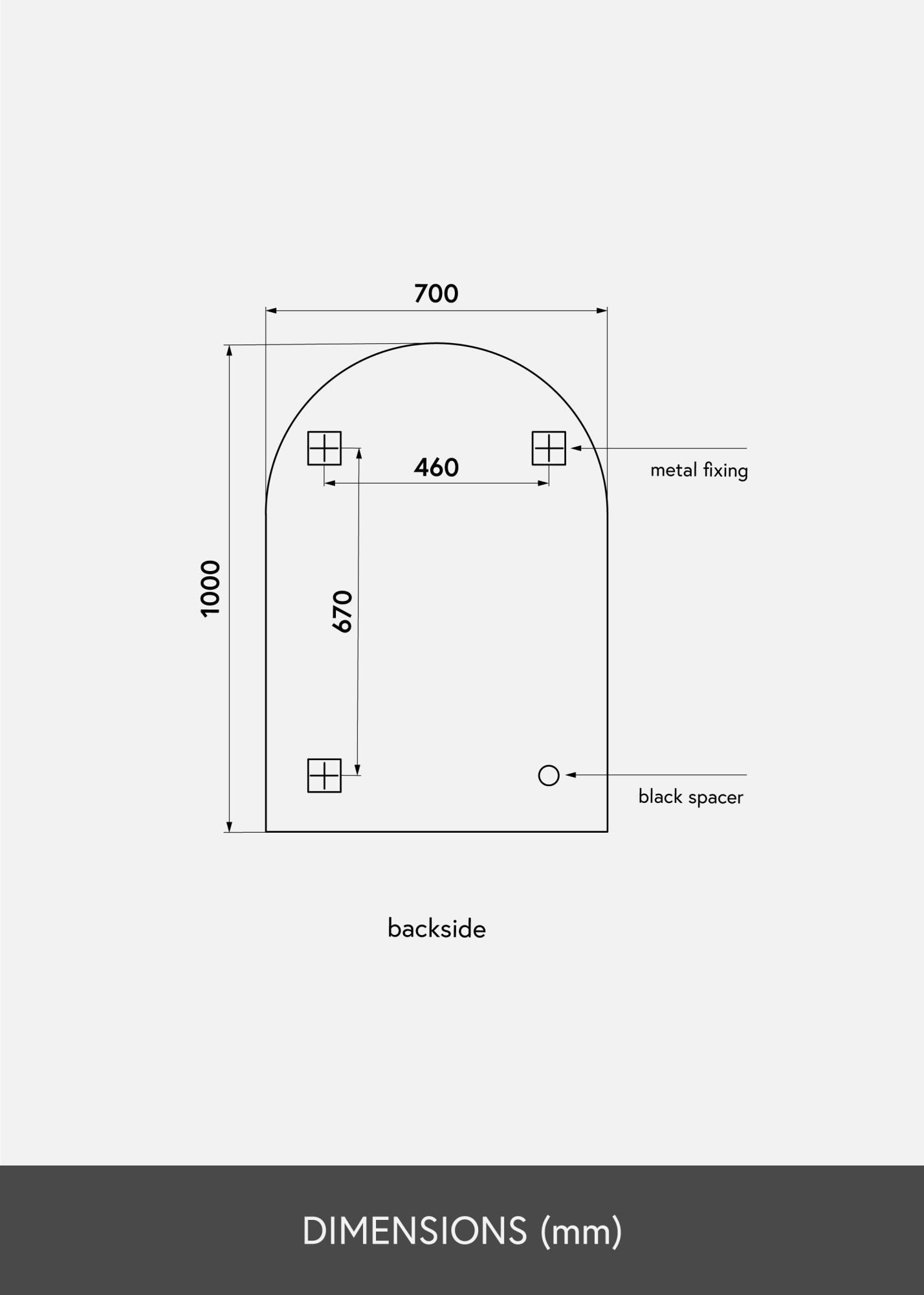 Tunn spegel från KAILA med valvformad design som passar utmärkt i både vardagsrum och sovrum. Spegeln har tunt ofärgat spegelglas och är inte försedd med någon ram, vilket förstärker den härligt minimalistiska känslan. Den eleganta framtoningen gör att väggspegeln passar perfekt i varje hem. Tack vare det praktiska väggfästet kan du fästa spegeln på väggen. Spegeln mäter 70x100 cm.