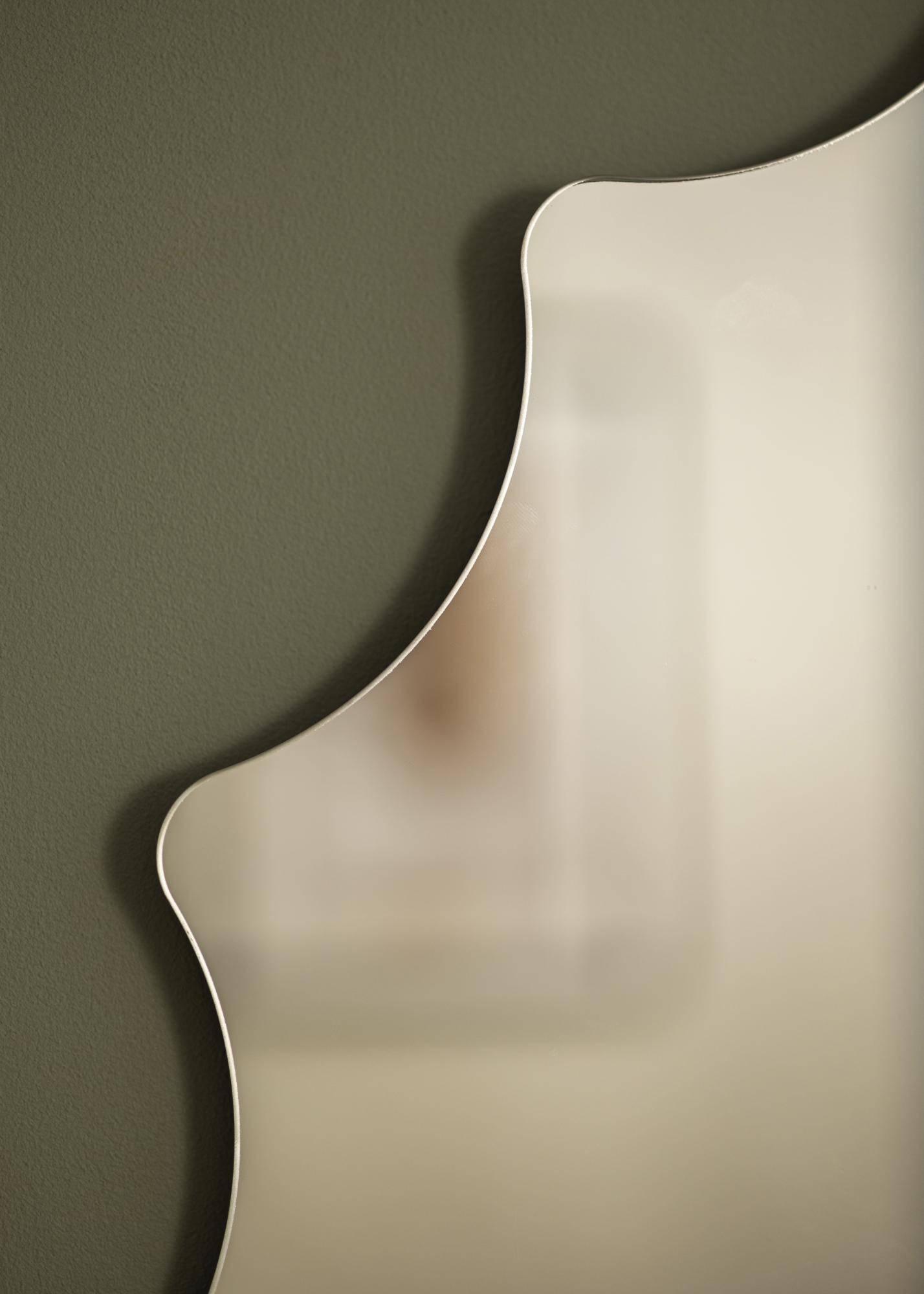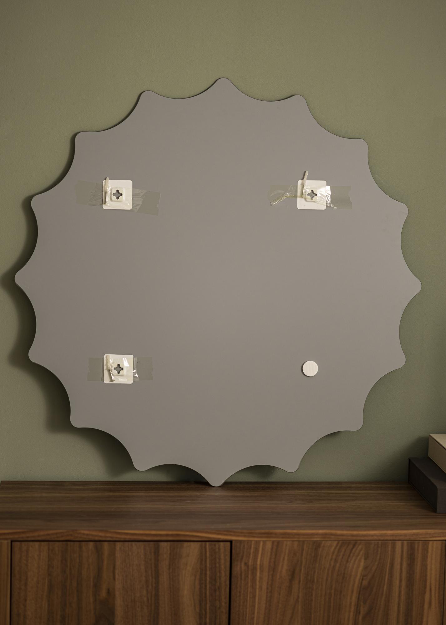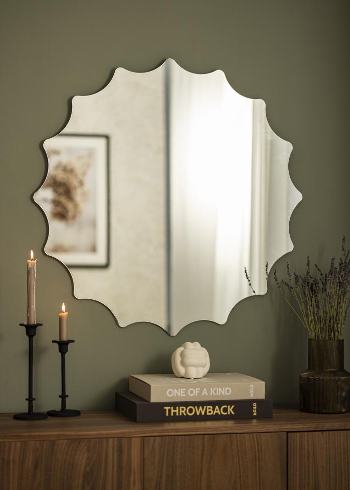 Snygg spegel från KAILA i en lekfull form som passar perfekt till det kreativa hemmet. Den solformade designen ger ett spännande intryck, samtidigt som det tunna och ofärgade glaset bibehåller den klassiska känslan. Väggspegeln saknar ram, vilket förstärker elegansen ännu mer. Låt dig inspireras av den vågiga formen och placera spegeln på väggen i hallen, sovrummet eller vardagsrummet med hjälp av det praktiska väggfästet. Spegeln har en diameter på 80 cm.
