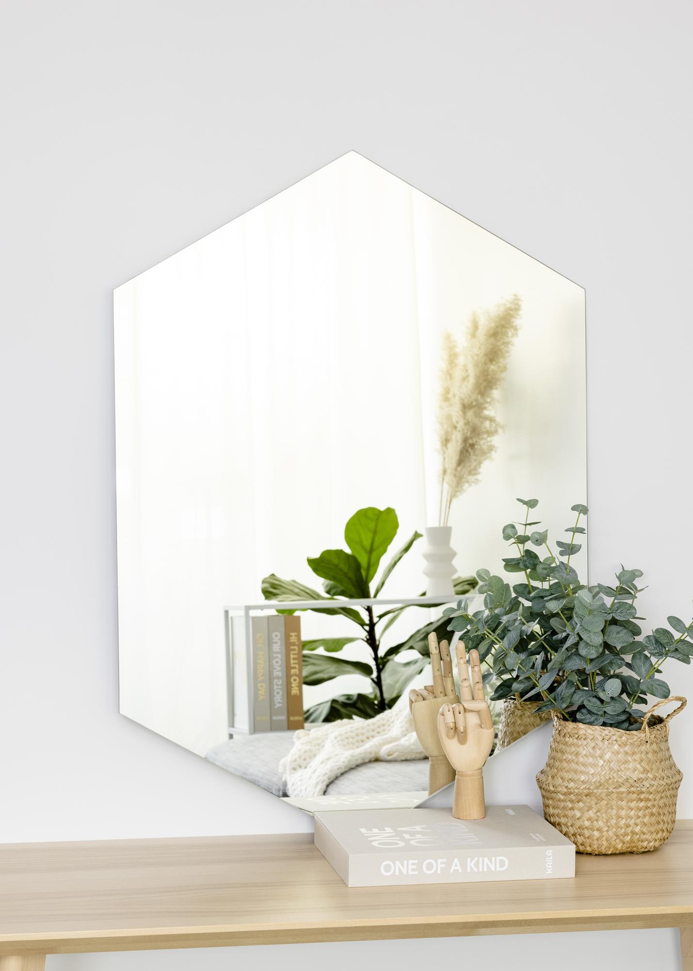 Denna stilrena spegel från KAILA har en minimalistisk och tidlös design som gör sig väl i alla hem. Häng upp spegeln på väggen med hjälp av väggfästet och låt den bli en vacker dekorativ detalj i sovrummet eller vardagsrummet. Den klassiska känslan förstärks av spegelns tunna, ofärgade glas. Med ett mått på 70x100 cm och en elegant sexkantig form passar väggspegeln utmärkt i nästan alla rum.