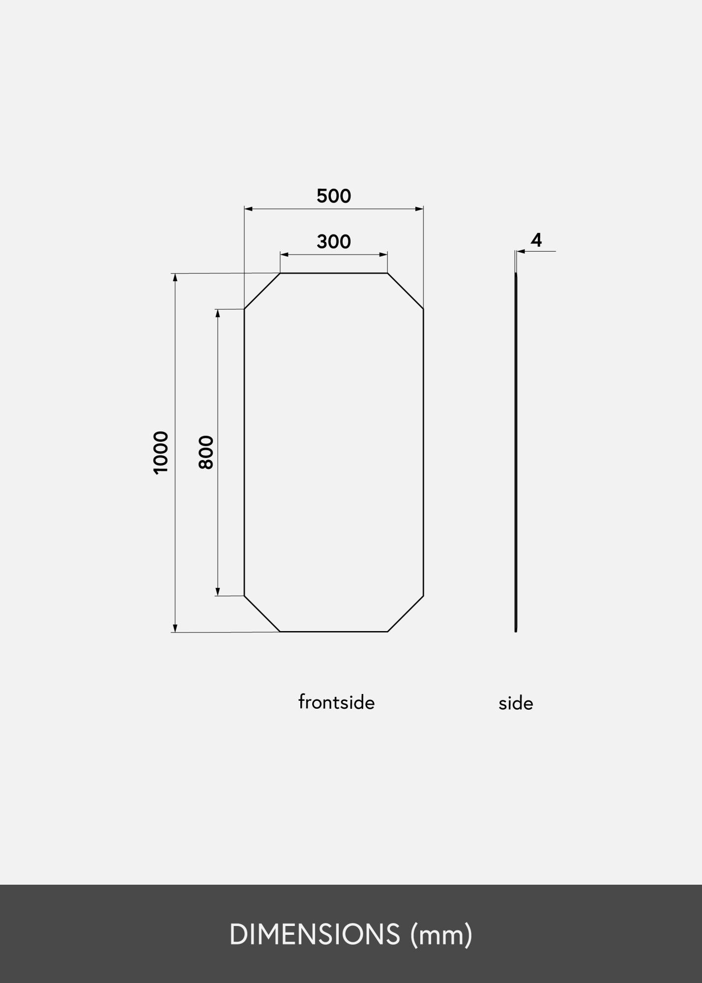 Åttkantig spegel från KAILA med minimalistiskt och elegant utseende – perfekt för varje hem! Oavsett vad du har för inredningsstil blir denna trendiga spegel ett utmärkt tillskott i vardagsrummet eller sovrummet. Spegeln har ett mått på 50x100 cm och vägghänge, så att du kan fästa den på väggen i det rum du önskar. Den tunna väggspegeln är inte försedd med någon ram vilket förstärker den härligt minimalistiska känslan.