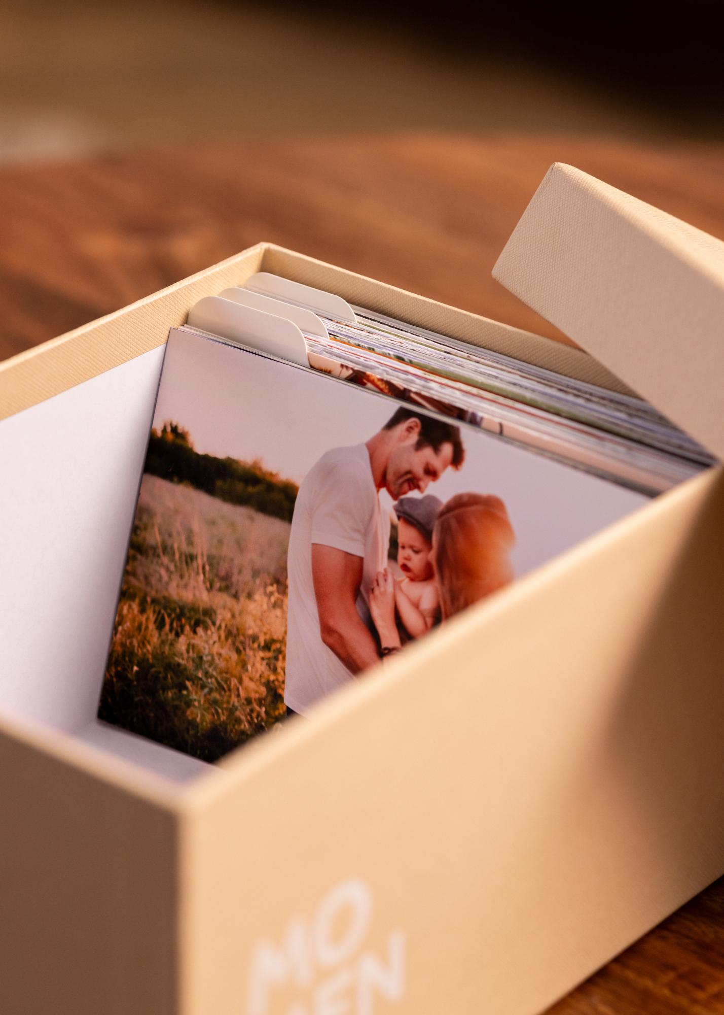 KAILA Memories Photo Box är en elegant och funktionell fotobox som rymmer upp till 700 bilder i storleken 10x15 cm. Den cremefärgade designen ger en mjuk och stilren känsla som smälter in i de flesta hem. Perfekt för att organisera och bevara dina favoritminnen på ett vackert och praktiskt sätt.