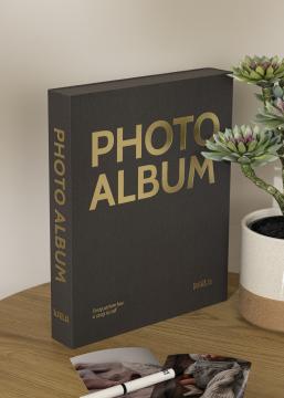 Detta är fotoalbumet för dig som letar efter ett album som rymmer dina finaste fotominnen och som samtidigt är snyggt att ha liggandes framme. Albumet är utformat som en Coffee Table Book, med en modern design som blir en given dekor på vardagsrumsbordet eller i bokhyllan. Det är utformat som en exklusiv ask, med ett omslag i stilren svart textil. När du öppnar albumet möts du av en ringpärm med 60 svarta albumsidor (30 blad) som du kan fylla med fotografier från fina stunder. Du klistrar själv in bilderna precis där du önskar.