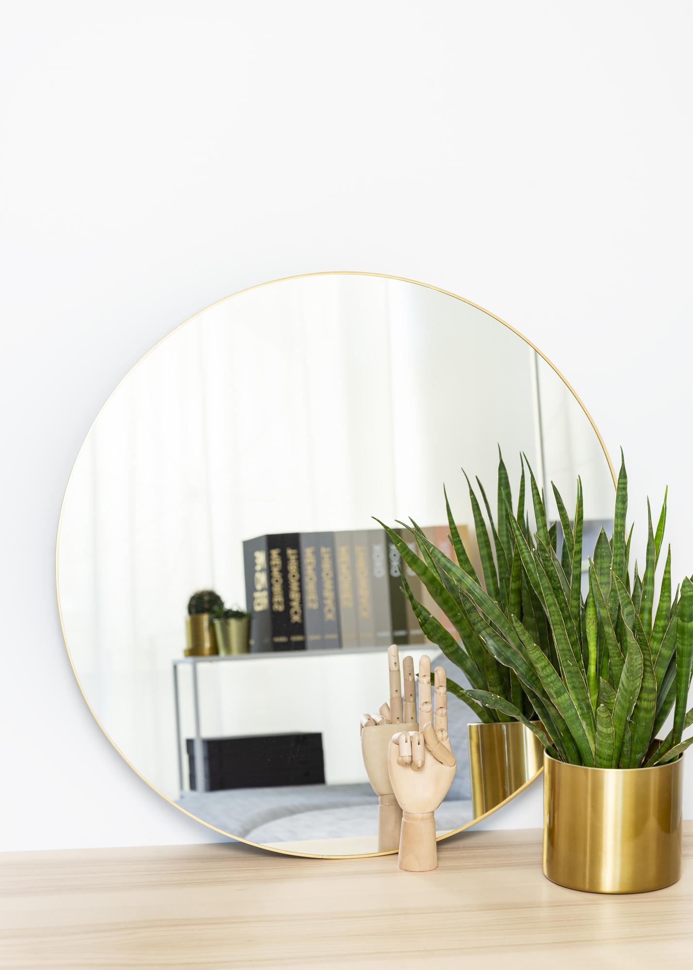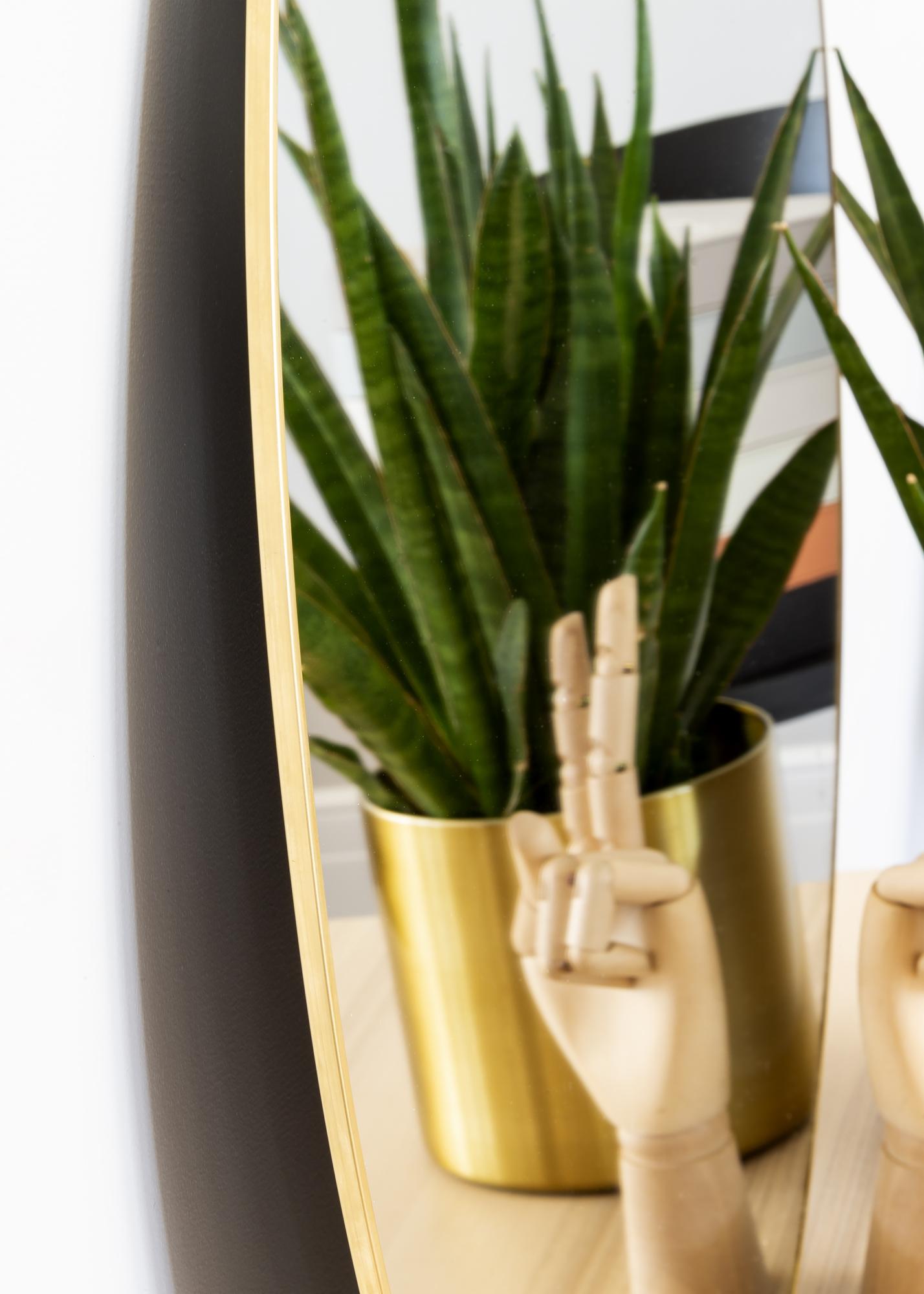 KAILA Thin Brass från svenska varumärket KAILA är en dekorativ väggspegel med en stilren och mässingsfärgad ram. Denna runda spegel tillför en känsla av lyx och värme till nästan vilket rum som helst, antingen ensam på väggen eller tillsammans med andra vackra väggdetaljer.
