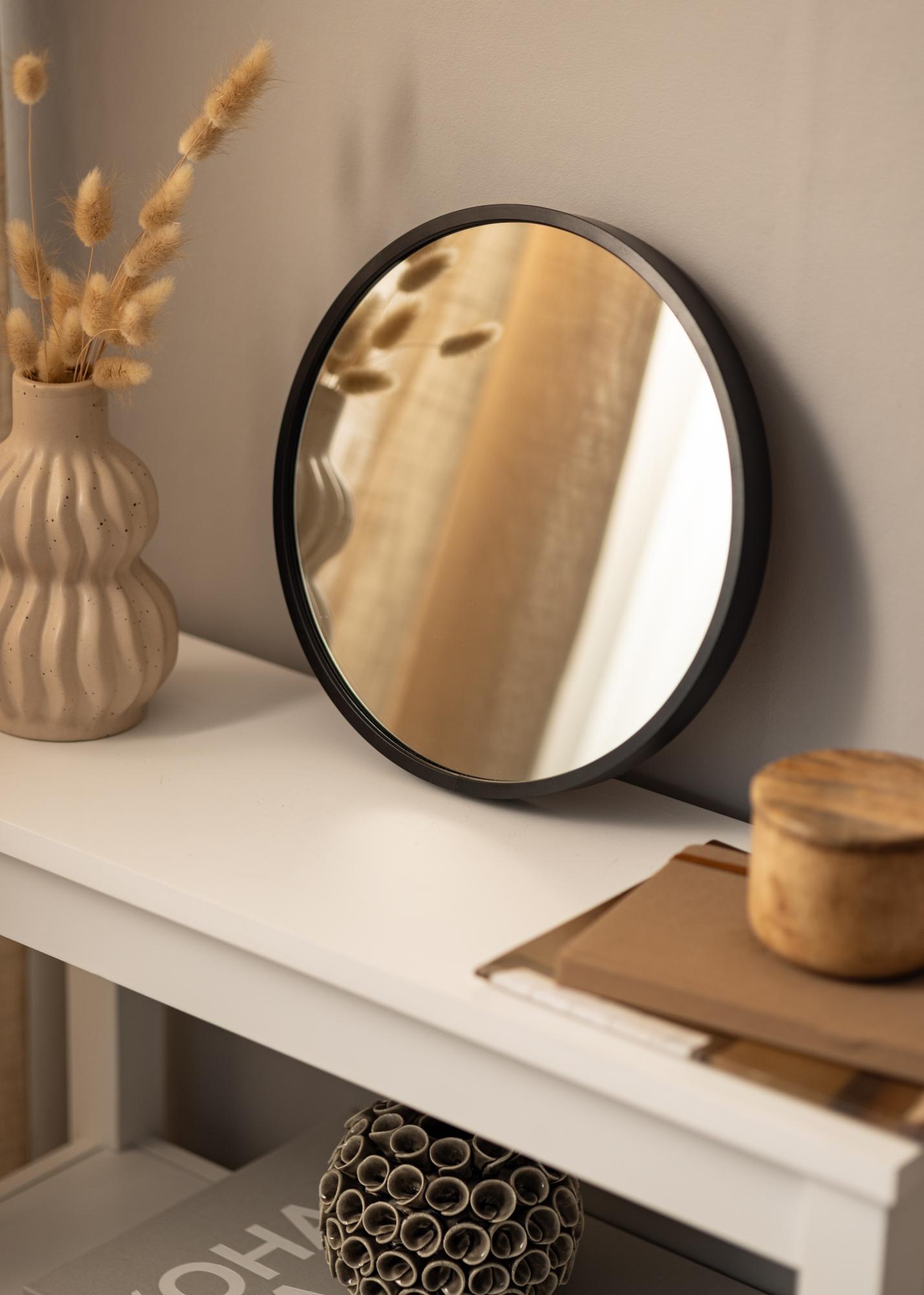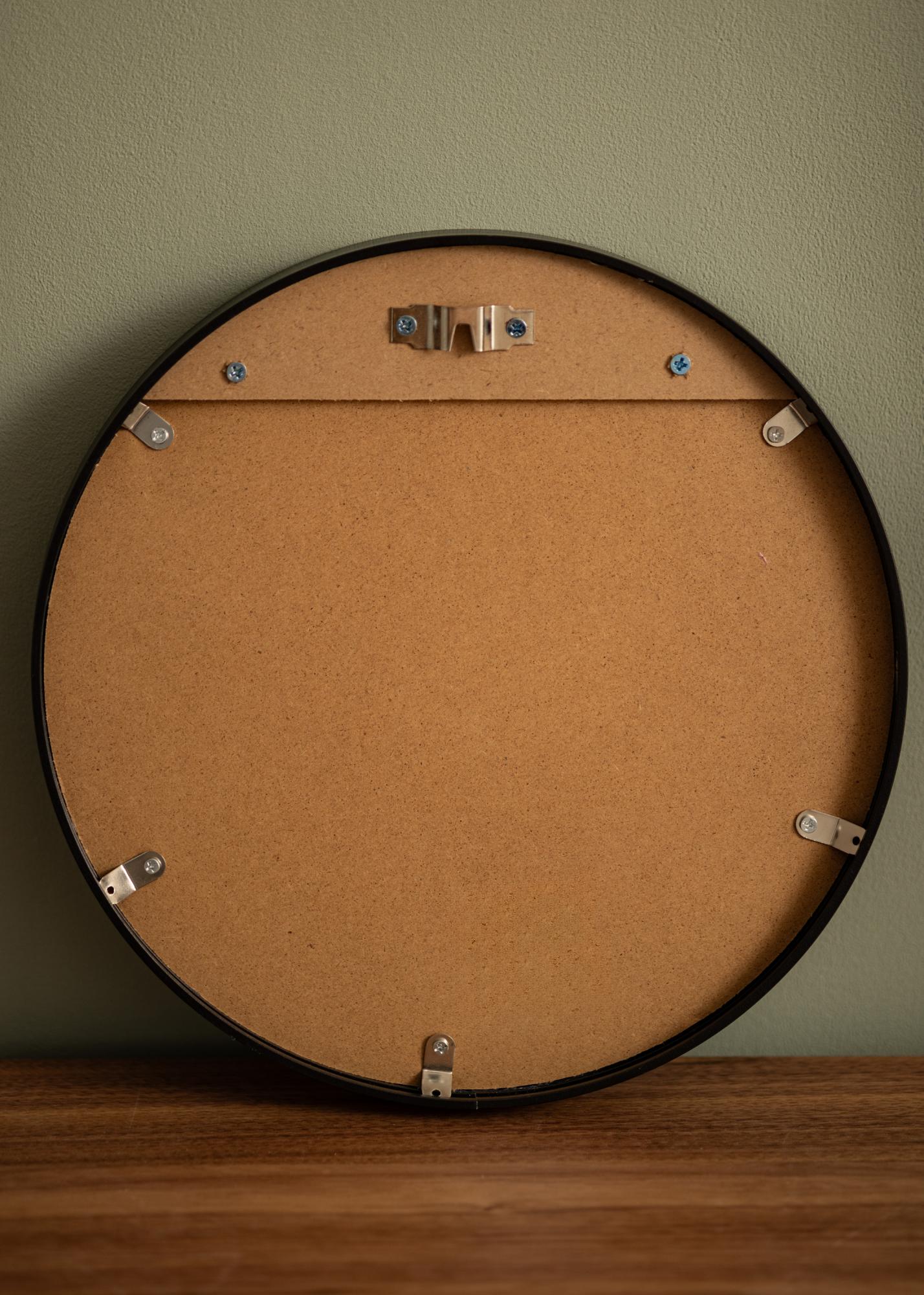 Denna spegel finns i flera storlekar, varav denna variant har diametern 30 cm. På spegelns baksida sitter ett förmonterat väggfäste för en enkel och stabil placering på din vägg. Lämplig skruv och plugg medföljer.