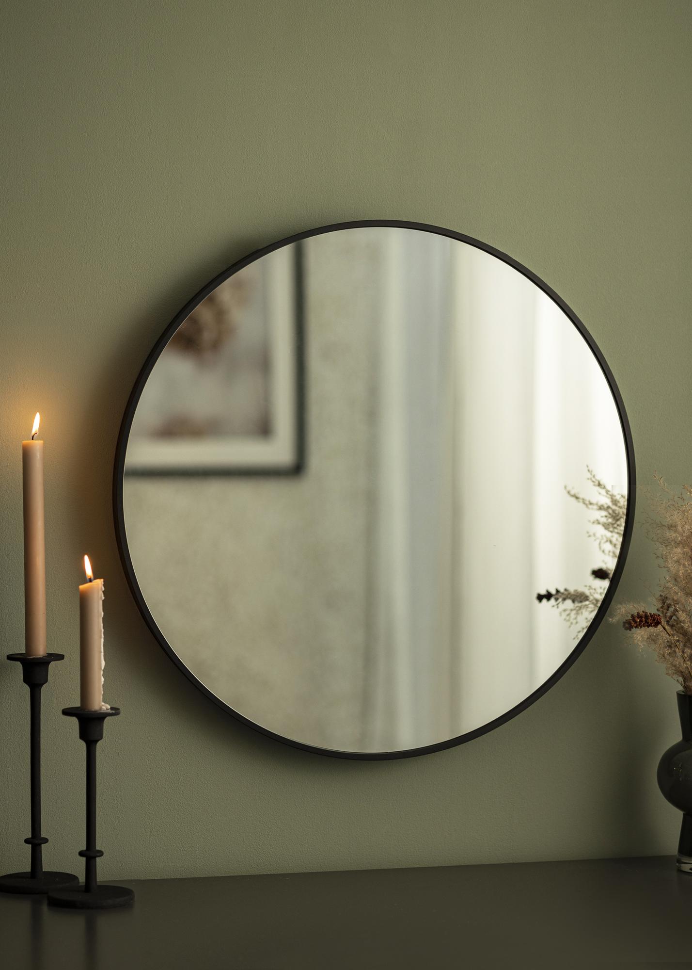 Denna spegel finns i flera storlekar, varav denna variant har diametern 60 cm. På spegelns baksida sitter ett förmonterat väggfäste för en enkel och stabil placering på din vägg. Lämplig skruv och plugg medföljer.