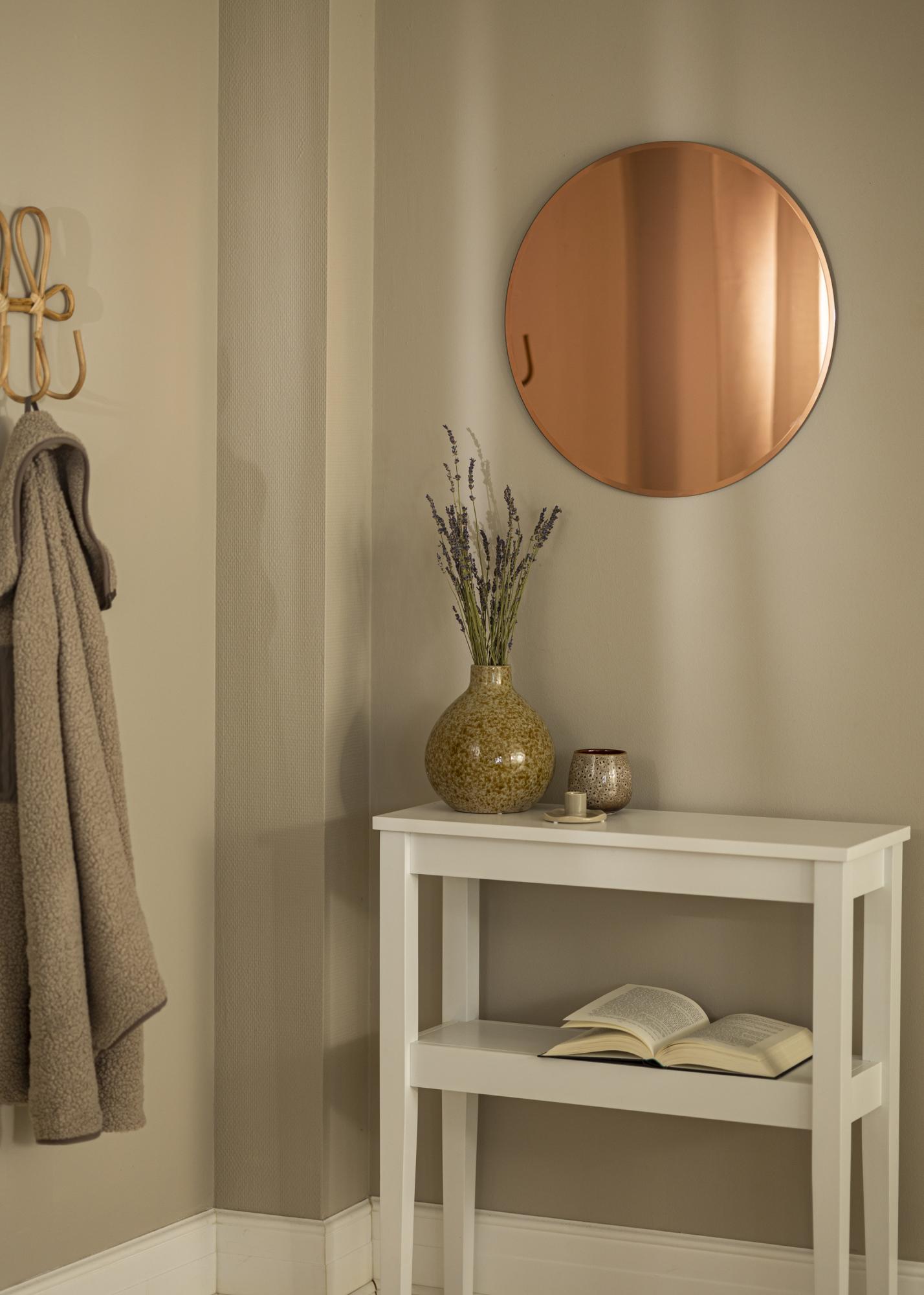Rose Gold Deluxe är en väggspegel i tidlös design, med en modern twist i form av ett tonat spegelglas. Spegelglasets varma nyans av roséguld ger ett exklusivt och unikt uttryck, som kombineras perfekt av den elegant runda formen. För extra finess är denna spegel även försedd med fasettkant.