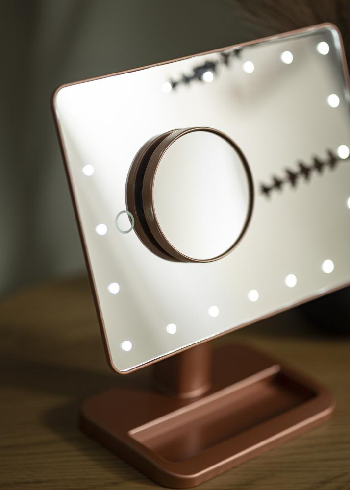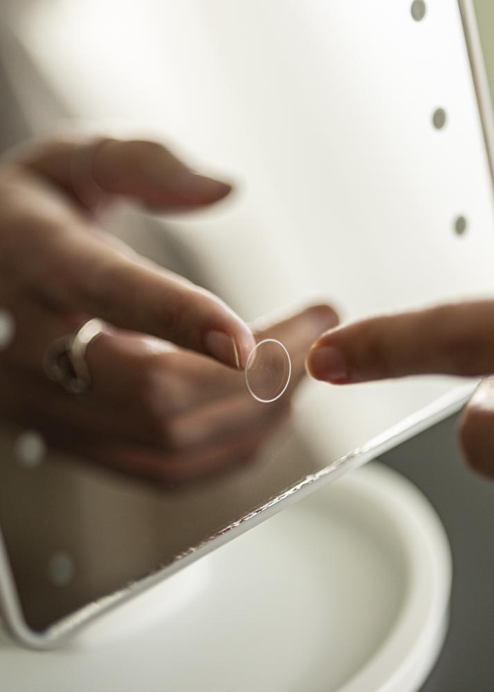 Detta är sminkspegeln för dig som vill ha en elegant spegel i en flexibel design. Den placeras ståendes, vilket gör att du enkelt kan flytta runt spegeln i hemmet eller ta med den när du är ute och reser. Den 16,5x25 cm stora spegelytan kan vinklas för att du lättare ska kunna applicera din makeup precis som du önskar. En mindre spegel med 10x zoom medföljer och den går att fästa på spegelytan på huvudspegeln.