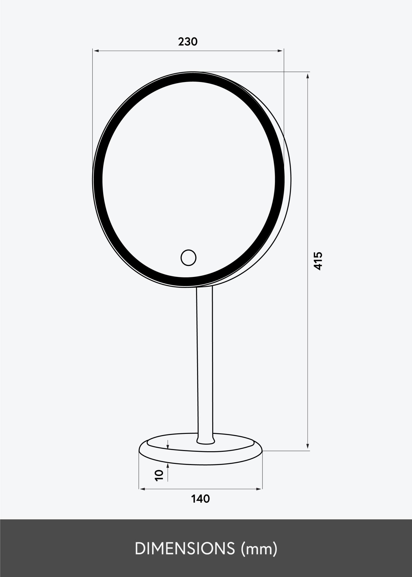 Detta är en klassisk badrumsspegel med LED-belysning – perfekt när du vill spegla dig med bra fokus. Den integrerade belysningen har justerbar ljusstyrka och färgtemperatur. Allt du behöver göra är att hålla på spegelns touch-knapp i några sekunder, så ändras ljusinställningarna. Spegeln har ett inbyggt batteri som laddas upp med den medföljande laddningskabeln.