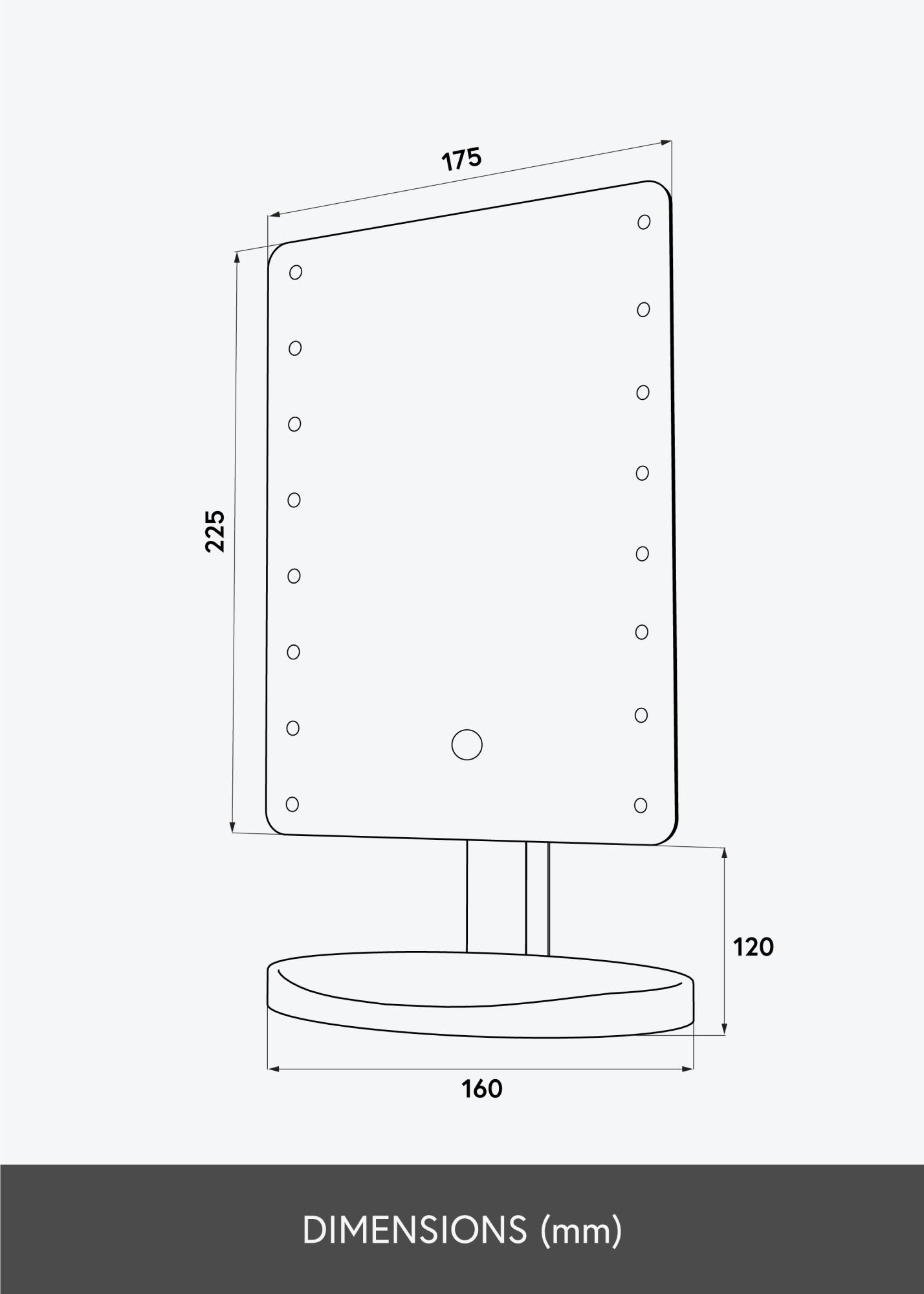 Sminkspegeln har en smart design som låter dig vrida och vinkla spegelytan. Spegeln drivs med 4 AA-batterier (medföljer ej)