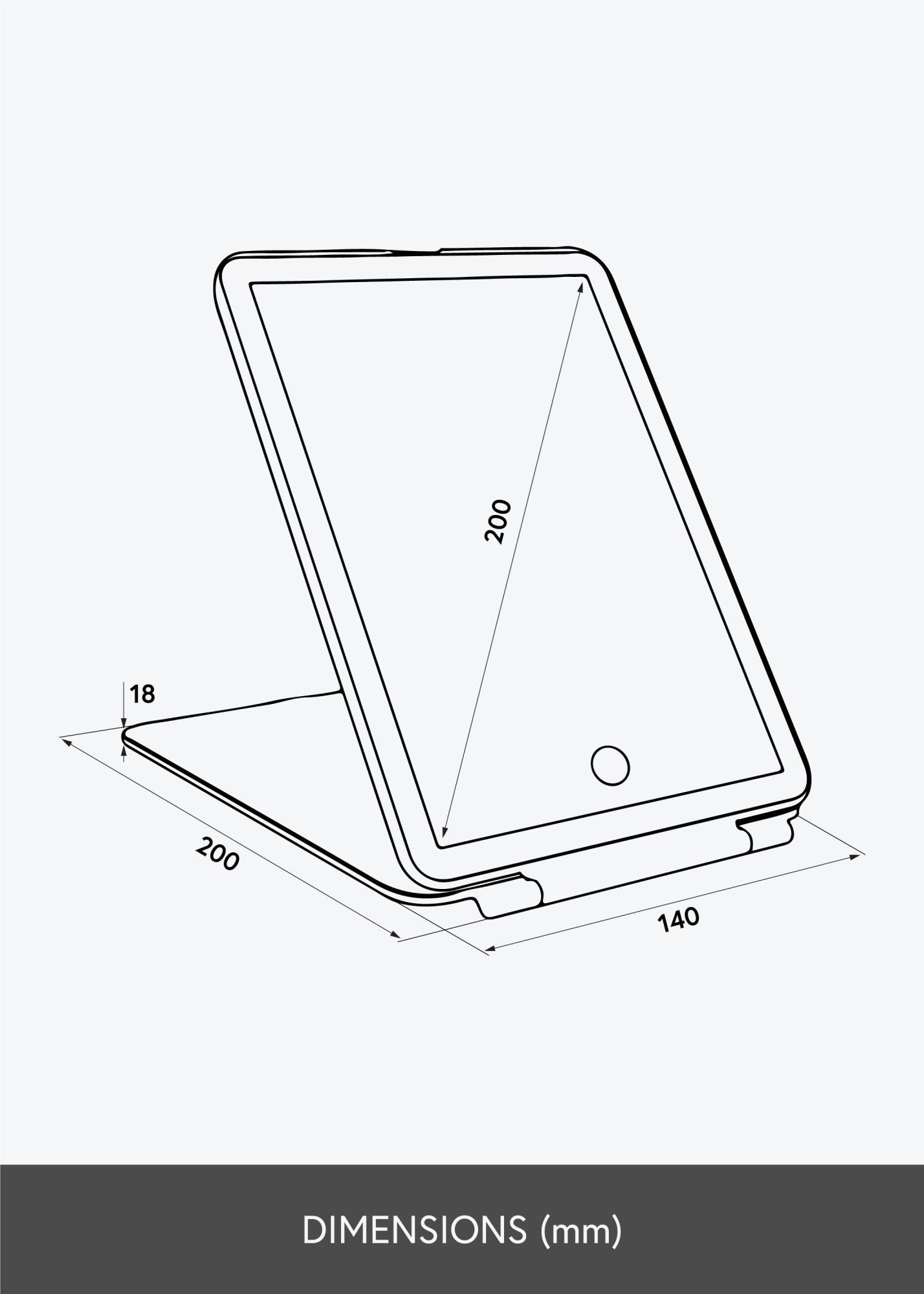 Med denna sminkspegel kan du applicera makeup och spegla dig vart du än är – den har nämligen en lätt och kompakt design som gör att den är enkel att ta med på alla resor. Dessutom har den inbyggd LED-belysning, för att du ska kunna spegla dig ordentligt i alla miljöer. Spegeln har ett inbyggt batteri som laddas upp via USB-anslutning. Kabel för laddning medföljer.