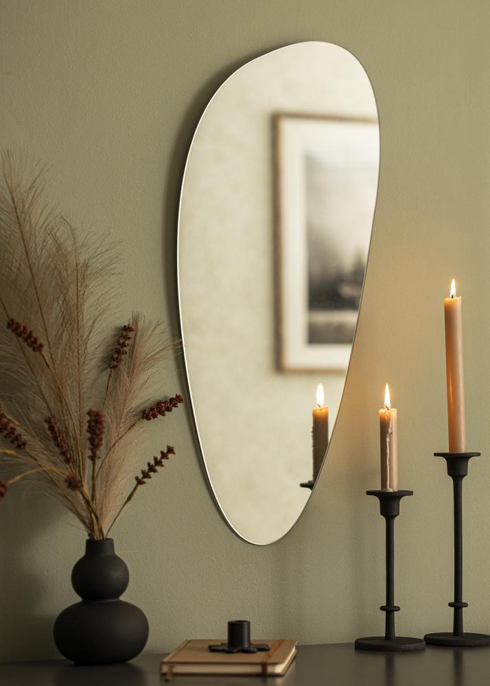 Denna väggspegel är minimalism när den är som bäst – med en design utan ram och en asymmetrisk, långsmal form. Spegelglasets tunnhet, på endast 4 mm, förstärker den stilrena minimalistiska känslan ytterligare.