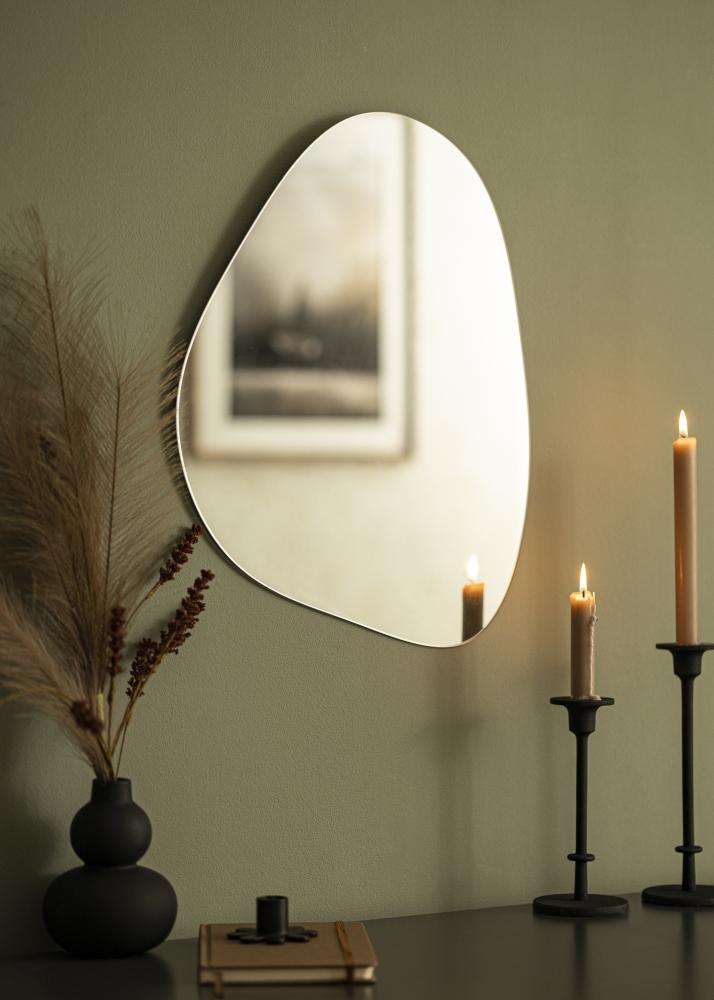 Runda och rektangulära speglar i all ära – men vill du ha en spegel som verkligen hamnar i blickfånget ska du satsa på en asymmetrisk variant. Denna väggspegel har en unik form och en elegant design utan ram. Det tunna spegelglaset på endast 4 mm förstärker det stilfulla uttrycket ännu mer.