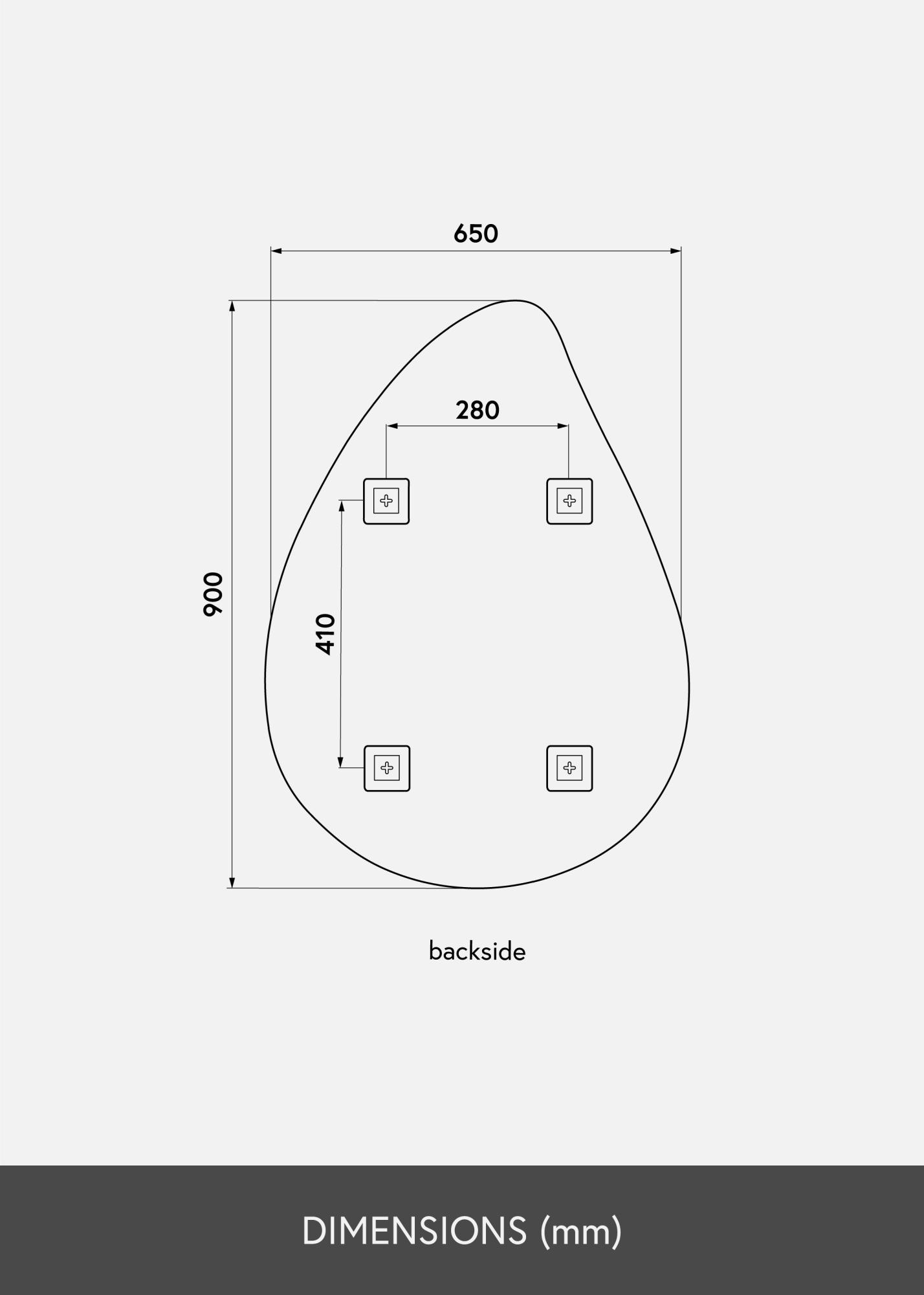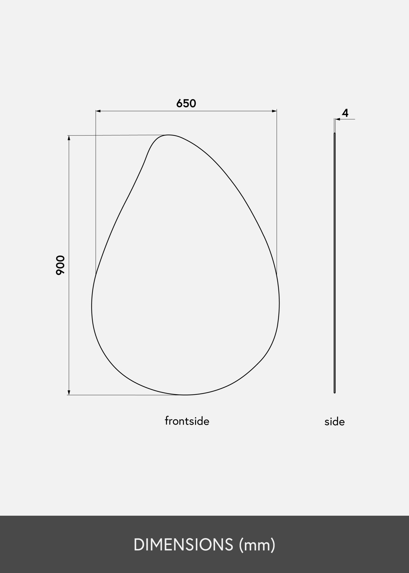 Denna droppformade spegel finns i flera storlekar, varav den här varianten har storleken 65x90 cm. Sätt spegeln på väggen i vardagsrummet, hallen, sovrummet - eller i vilket rum som helst där du vill tillföra funktion och stilren svensk design.
