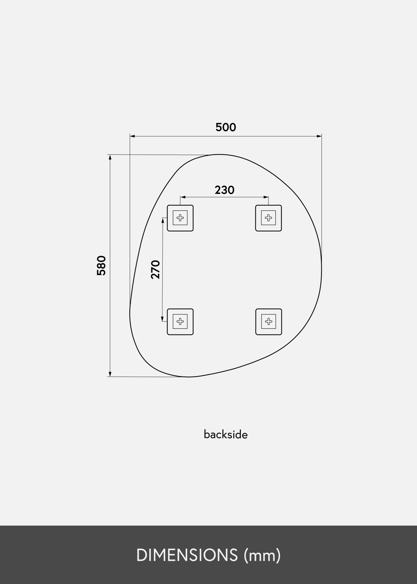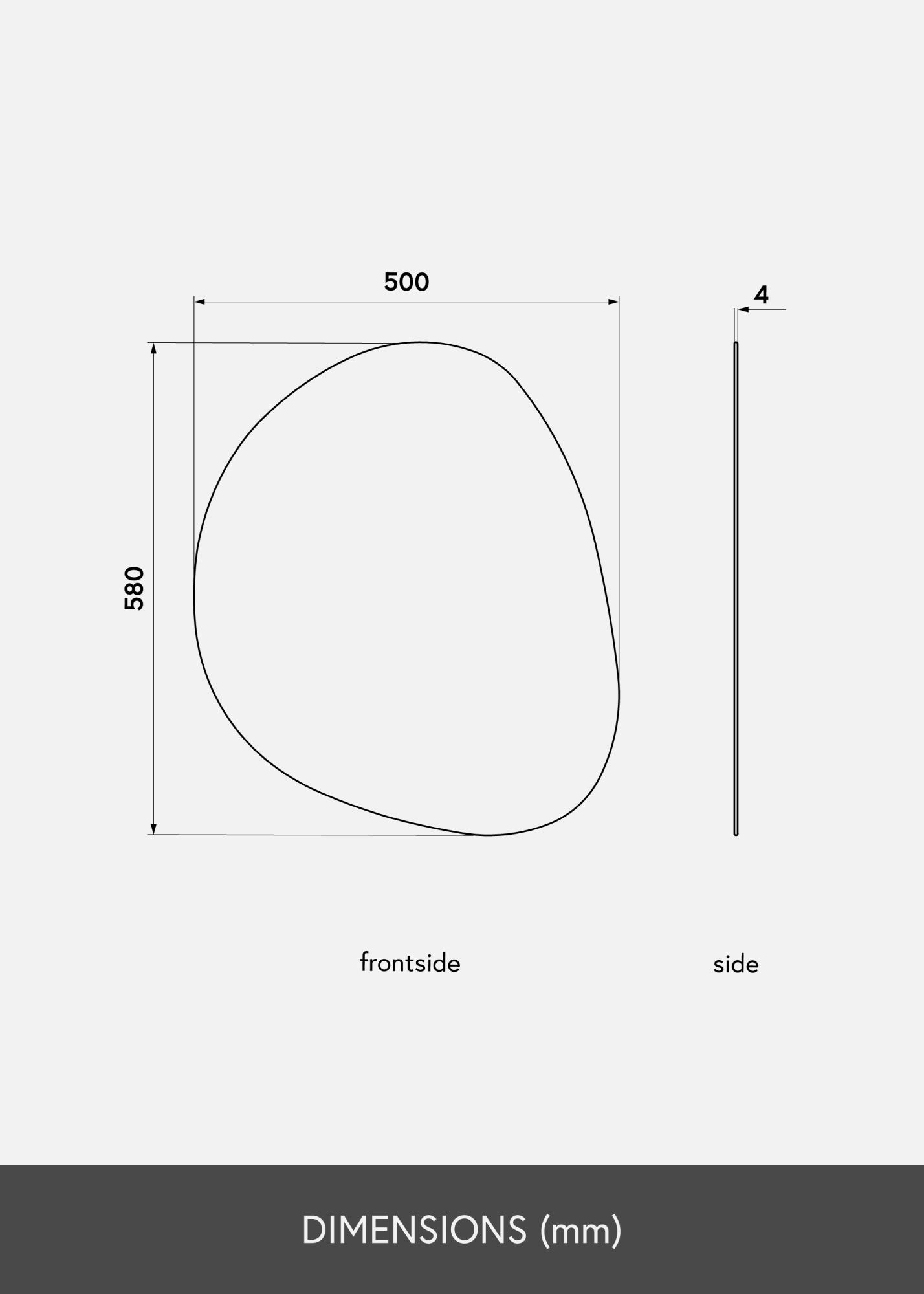 Denna väggspegel från KAILA har en elegant asymmetrisk form som påminner om en droppe. Spegeln är mycket tunn och har ingen ram, vilket i kombination med den lyxigt fasettslipade kanten, ytterligare förstärker den eleganta och moderna framtoningen. Det är en mycket dekorativ väggspegel som garanterat drar åt sig blickar vilket rum den än placeras – i vardagsrum såväl som i hall eller sovrum. Spegeln är 50x58 cm stor.