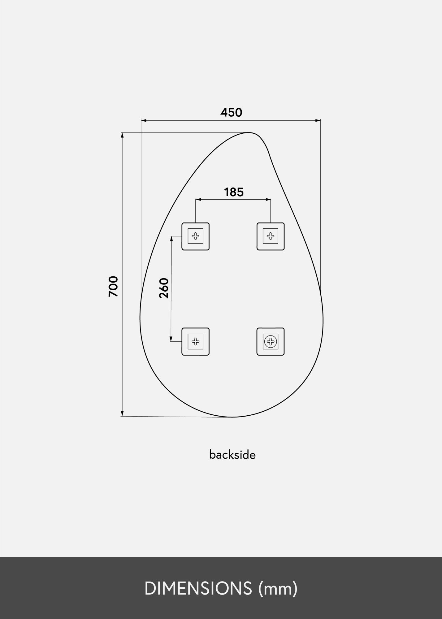 En droppformad spegel som denna kan sättas på väggen i vilket rum som helst där du vill tillföra elegans och praktisk funktion, samt skapa en inbjudande och lättsam atmosfär. Spegeln finns i flera storlekar, denna variant har storleken 45x70 cm.