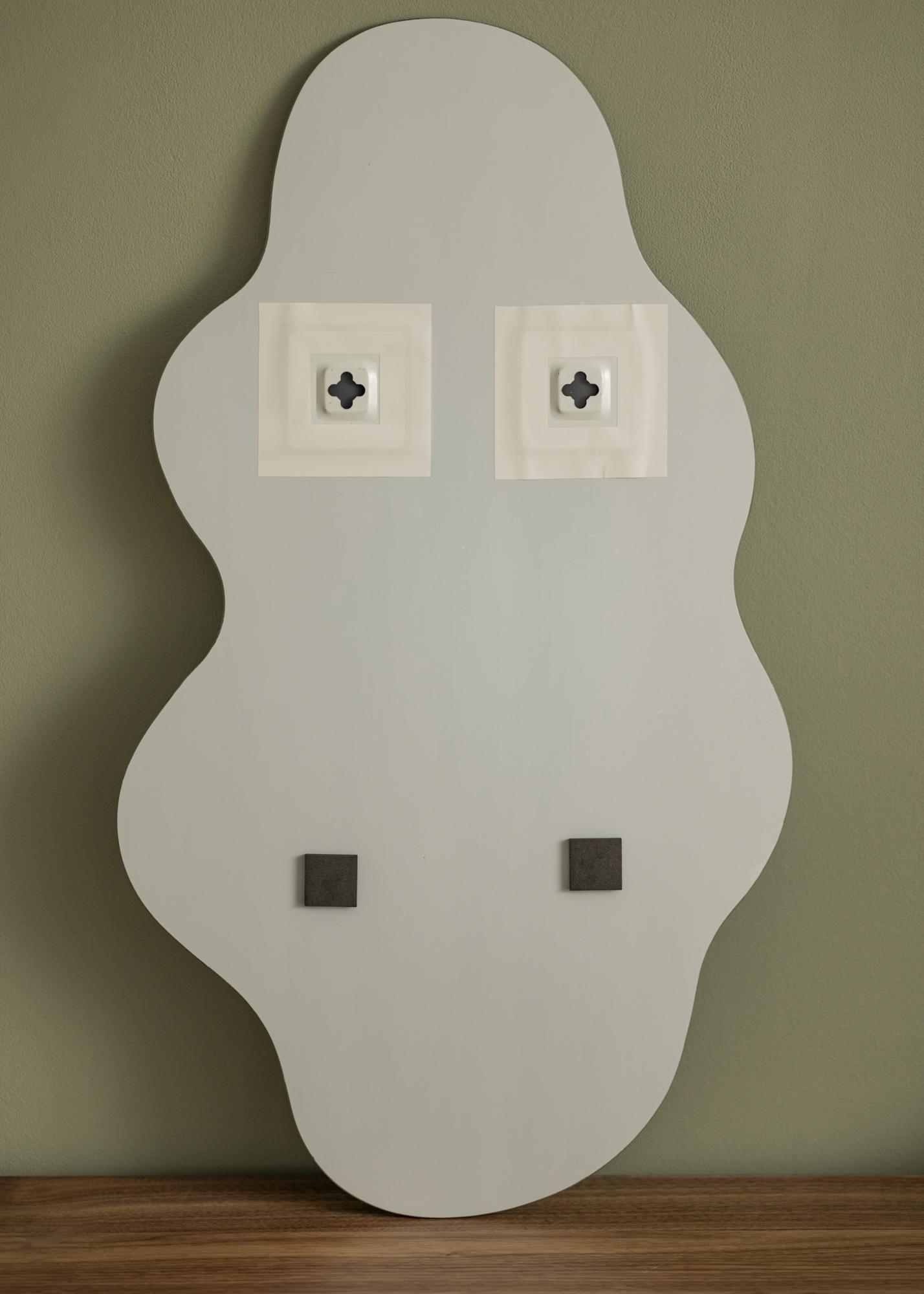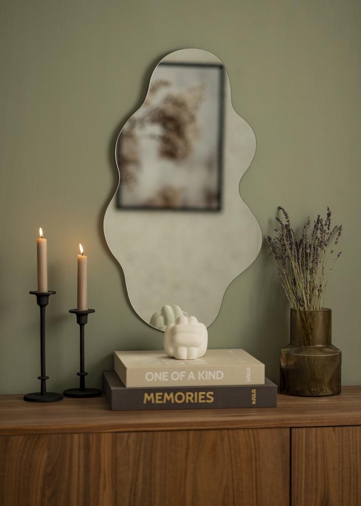 Har du många raka linjer i ditt hem? Då är det supersnyggt att bryta av med en spegel med mjuk böljande form! Fierce Cloud är en trendig väggspegel utan ram, i en design med vågigt formade kanter. Det tunna spegelglaset på 4 mm gör att spegeln känns elegant och nätt, vilket är en framtoning som passar i sovrum såväl som vardagsrum. Den mäter 40x70 cm.