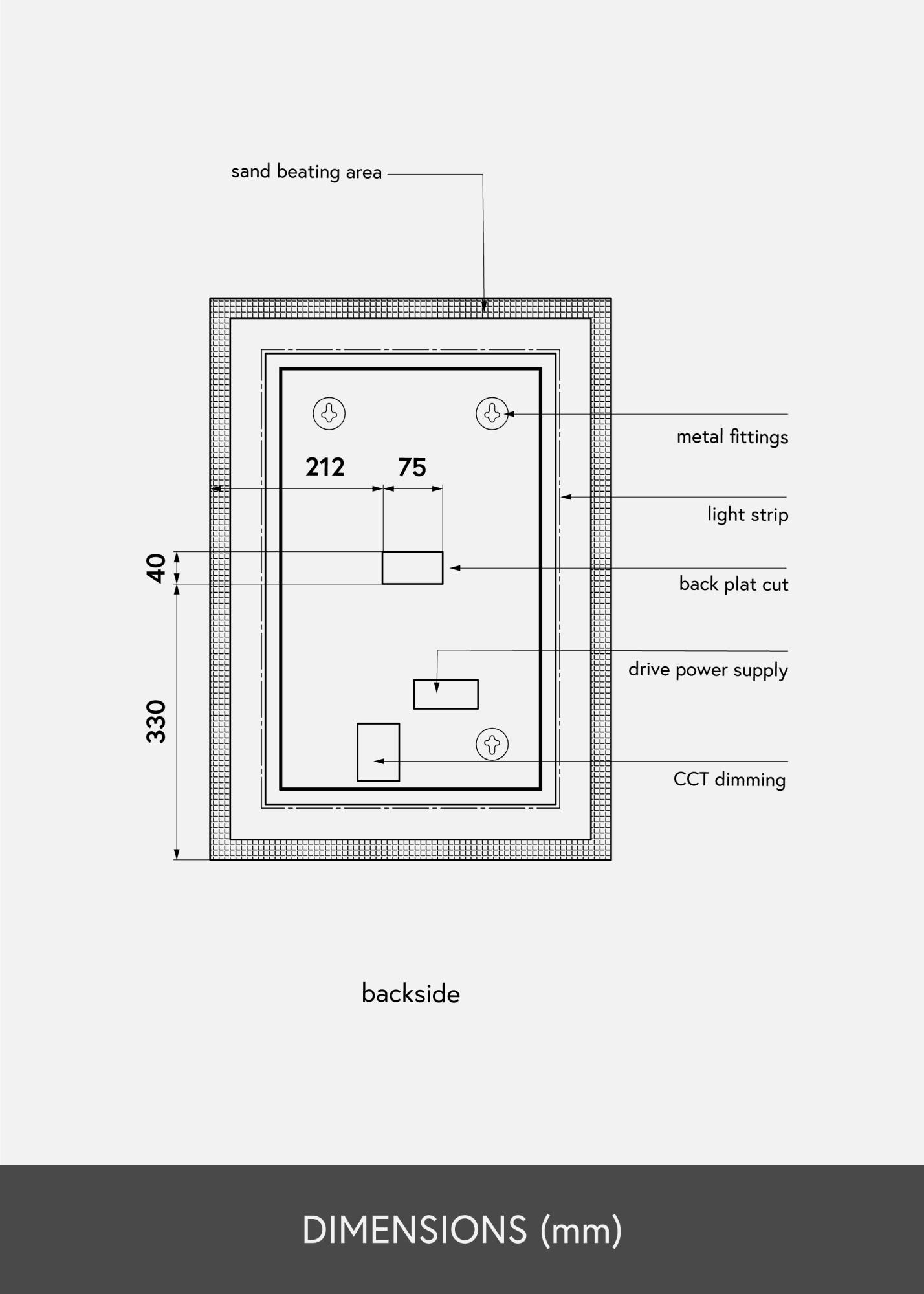 Den eleganta badrumsspegeln är endast 3cm djup och mäter 50x70 cm. Spegeln är godkänd för badrum och den stilfulla designen tillför verkligen en luxuös känsla till ditt hem! Badrumsspegeln är avsedd för fast installation och kopplas mot en strömbrytare. För att spegeln ska fungera korrekt ska den kopplas till en vanlig strömbrytare, inte en dimmerströmbrytare.