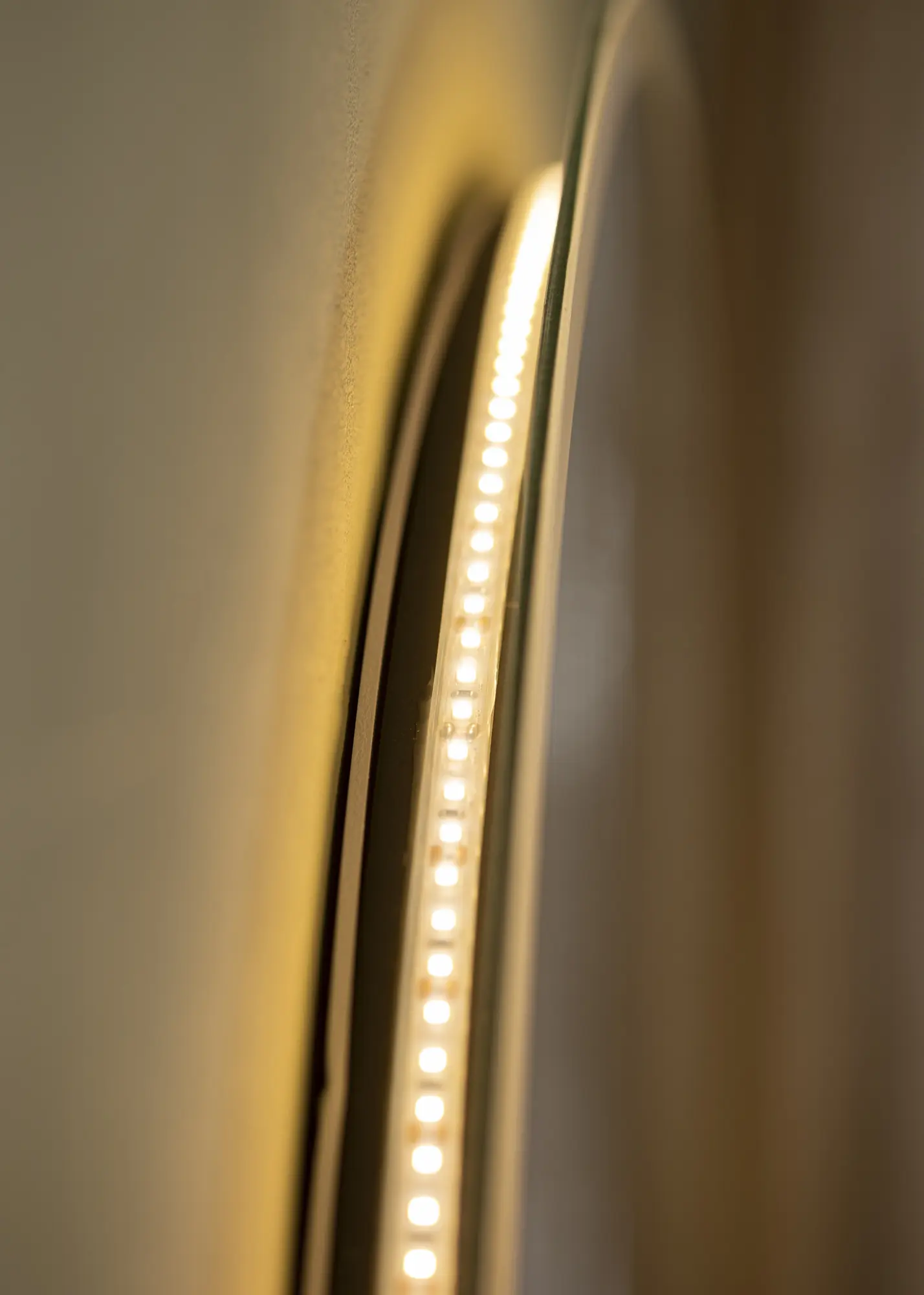 LED är en energisnål ljuskälla som ger ett jämnt och naturligt ljus - vilket gör att den här spegeln passar perfekt som badrumsspegel och som sminkspegel, eller varför inte som hallspegel! Den eleganta spegeln mäter 80 cm i diameter och är endast 3 cm tunn.