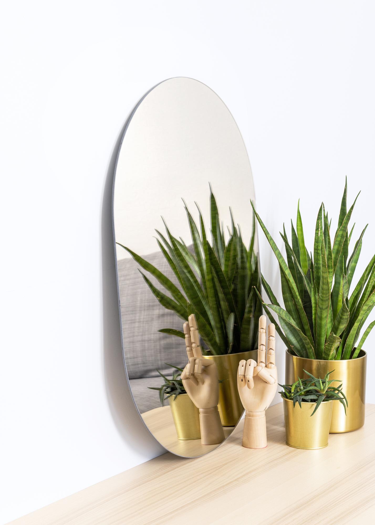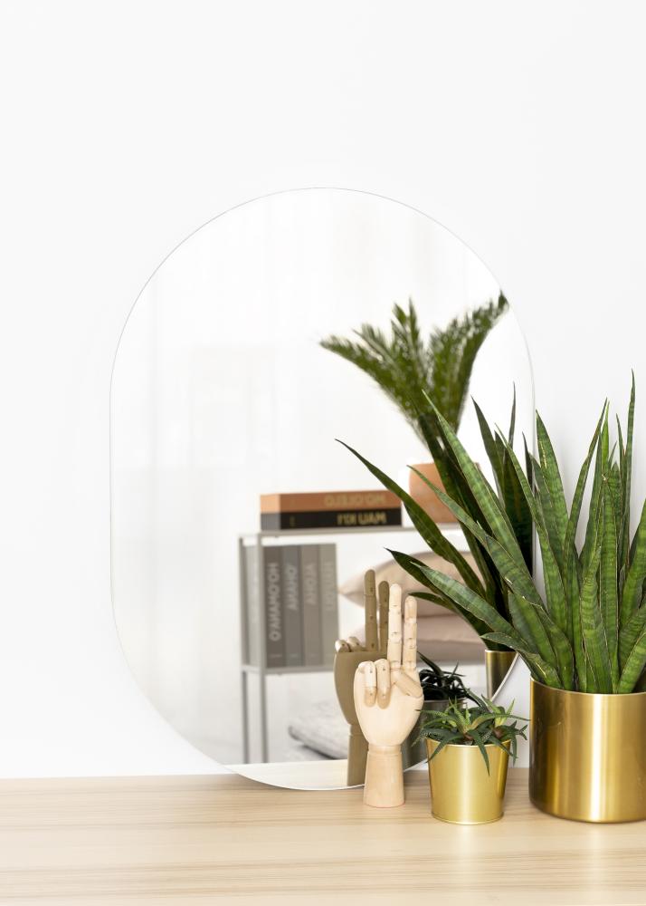Med en oval spegel som denna skapar du en mjuk och inbjudande atmosfär i ditt hem. Denna spegel är endast 4 mm tunn, vilket i kombination med den mjuka formen resulterar i en mycket elegant väggspegel. Det är en spegel med en design lika modern som tidlös, och som därför passar såväl trendiga som klassiska heminredningar.