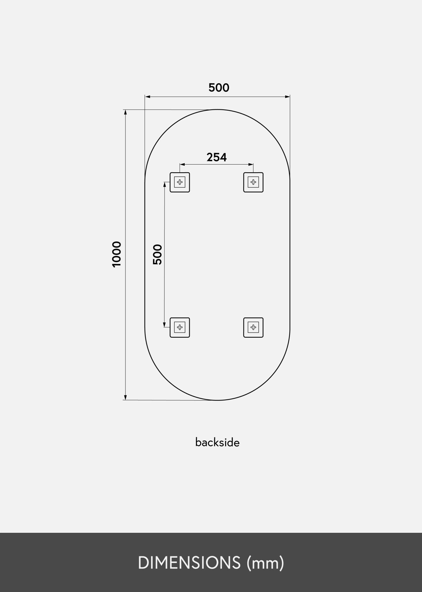 Denna ovala spegel finns i flera storlekar, och just den här varianten har storleken 50x100 cm.