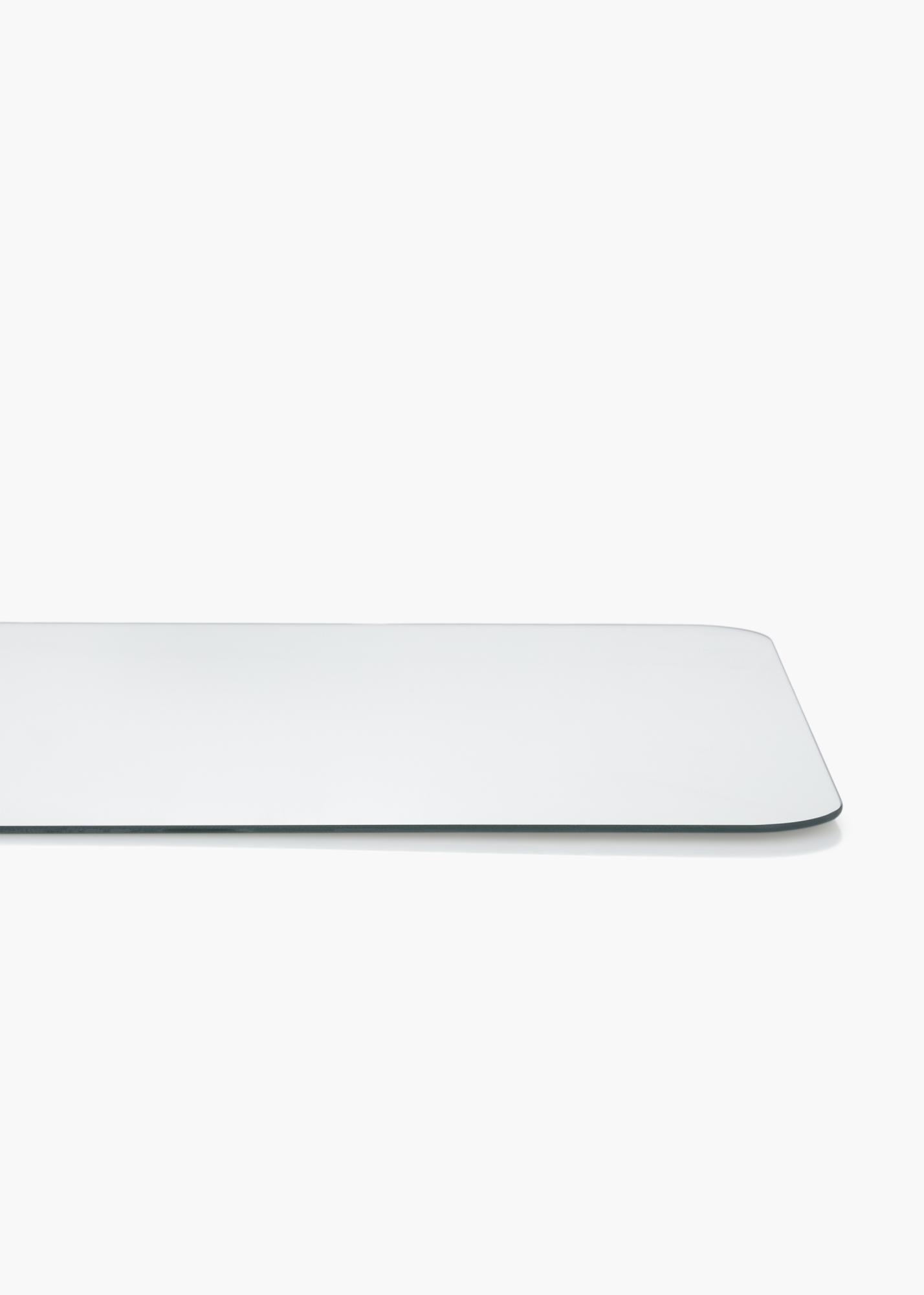 Detta är en rektangulär spegel från KAILA, med dekorativt rundade hörn. Den mjuka formen ger ett elegant uttryck, som förstärks ytterligare då spegeln inte har någon ram. Spegeln är 50x100 cm stor.