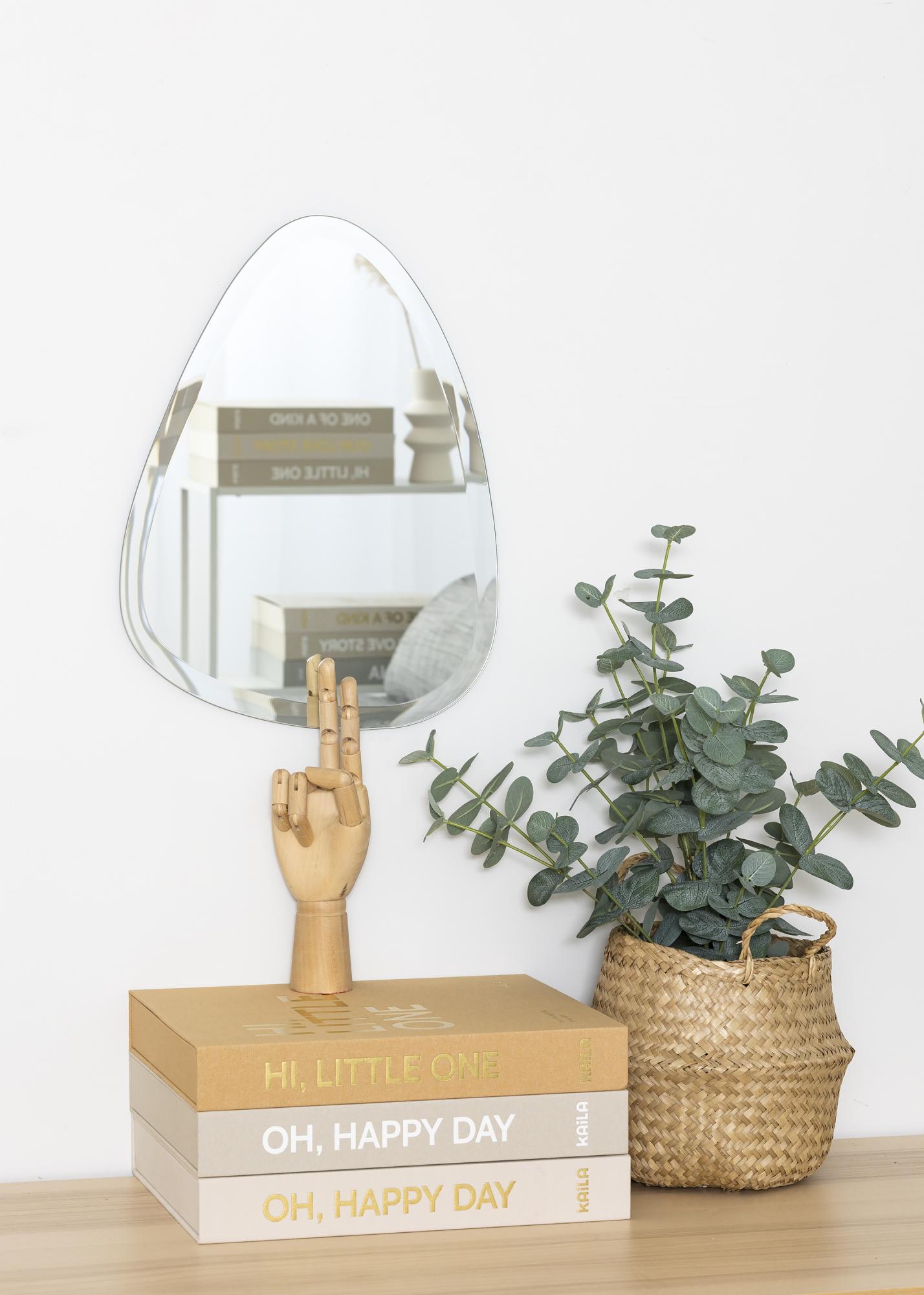 Denna asymmetriska spegel från KAILA blir en intressant inredningsdetalj som passar lika bra i vardagsrummet som i sovrummet. Den tunna väggspegeln har ingen ram, vilket ger den ett mycket stilrent utseende. Den eleganta känslan förstärkt ytterligare av den fasettslipade kanten.