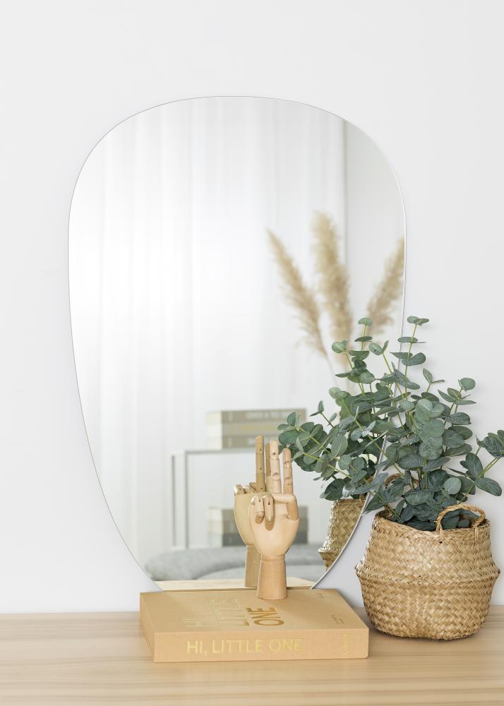 Denna asymmetriska spegel från KAILA blir ett modernt inslag i din heminredning. Spegeln har en mjuk form som närmast kan beskrivas som ojämnt oval. Väggspegeln är tunn och har ingen ram, vilket förstärker känslan av elegans.
