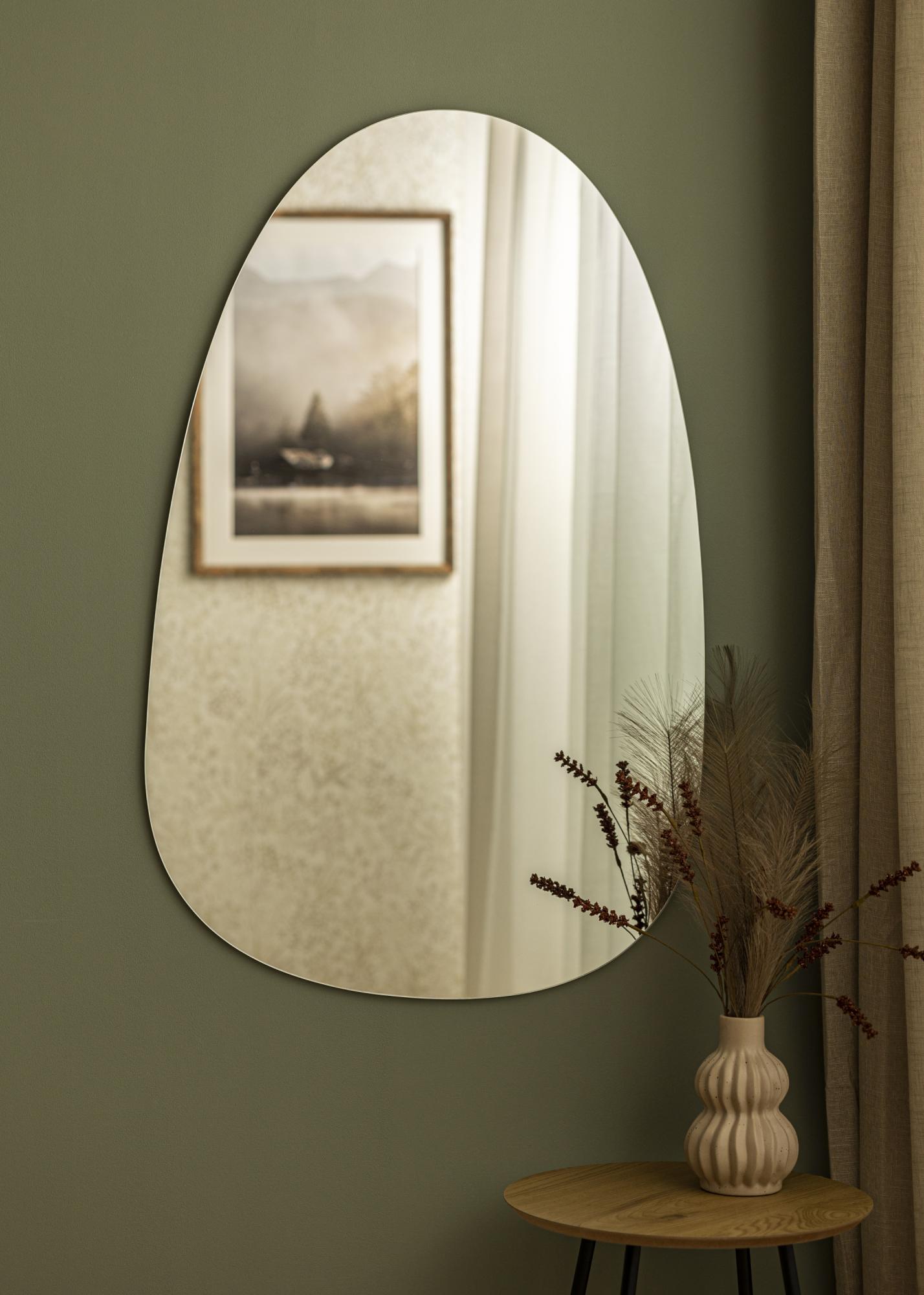 Med denna spegel får du det bästa av två världar: en trendig och iögonfallande inredningsdetalj som dessutom är väldigt elegant och stilfull. Spegeln har en mjuk och asymmetrisk oval form som påminner lite om ett ägg. Spegeln är även väldigt tunn och har ingen ram, vilket bidrar till dess moderna och mycket eleganta känsla.