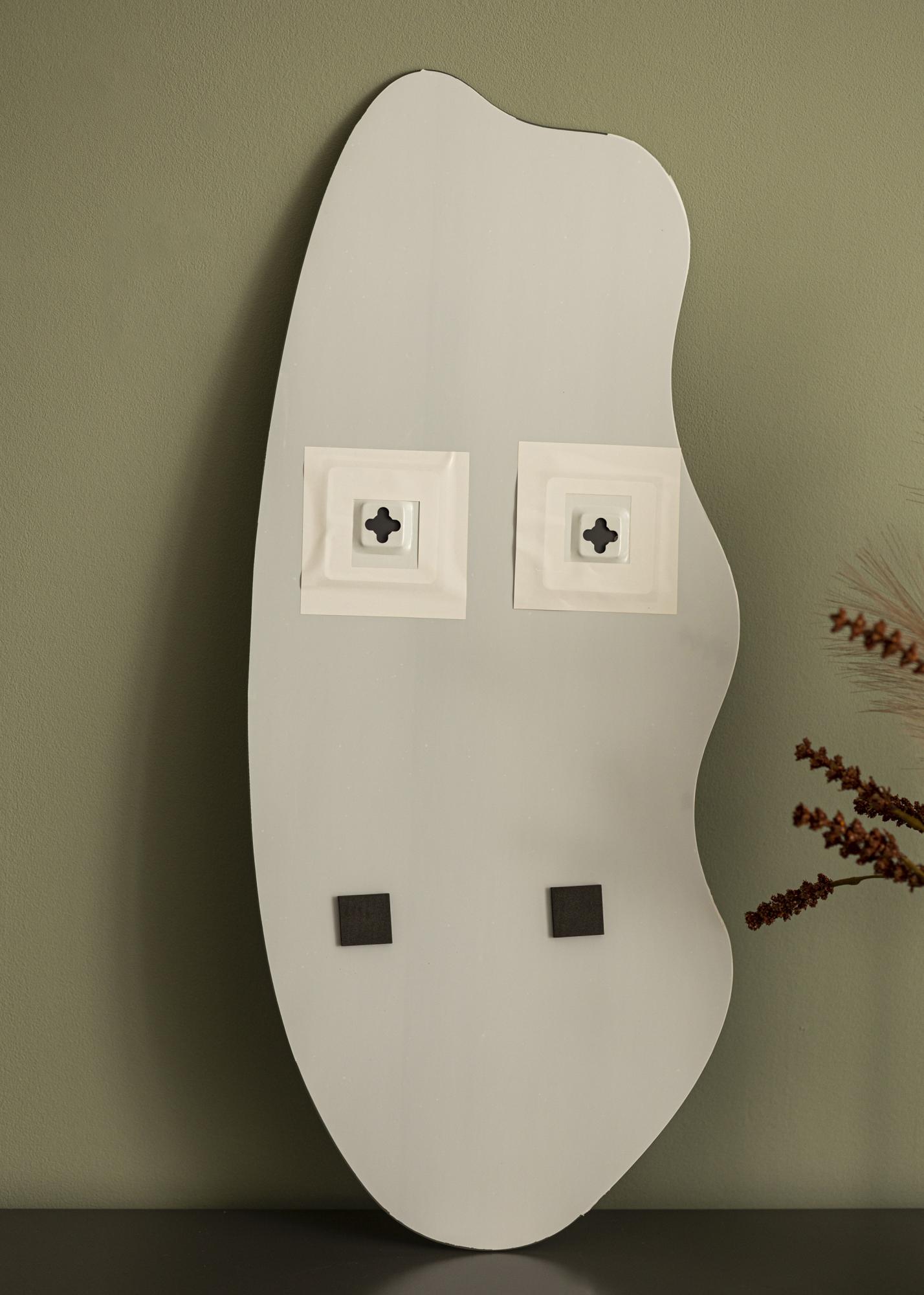 Spegeln har ett tunt spegelglas på 4 mm. Väggfästena på baksidan låter dig montera upp spegeln i vertikalt läge.