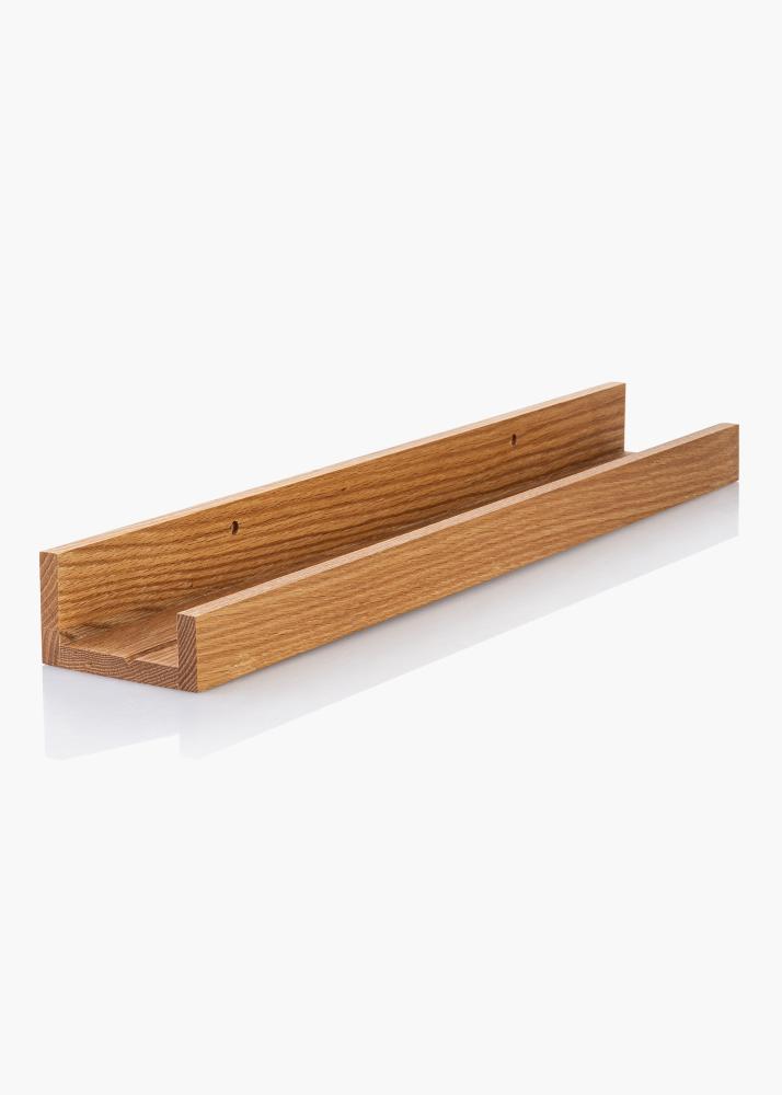 Notera att eftersom tavelhyllan är tillverkad i solid ek kan naturliga färgvariationer förekomma. Tavelhyllan är behandlad med en skyddande transparent olja.