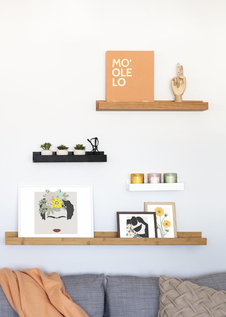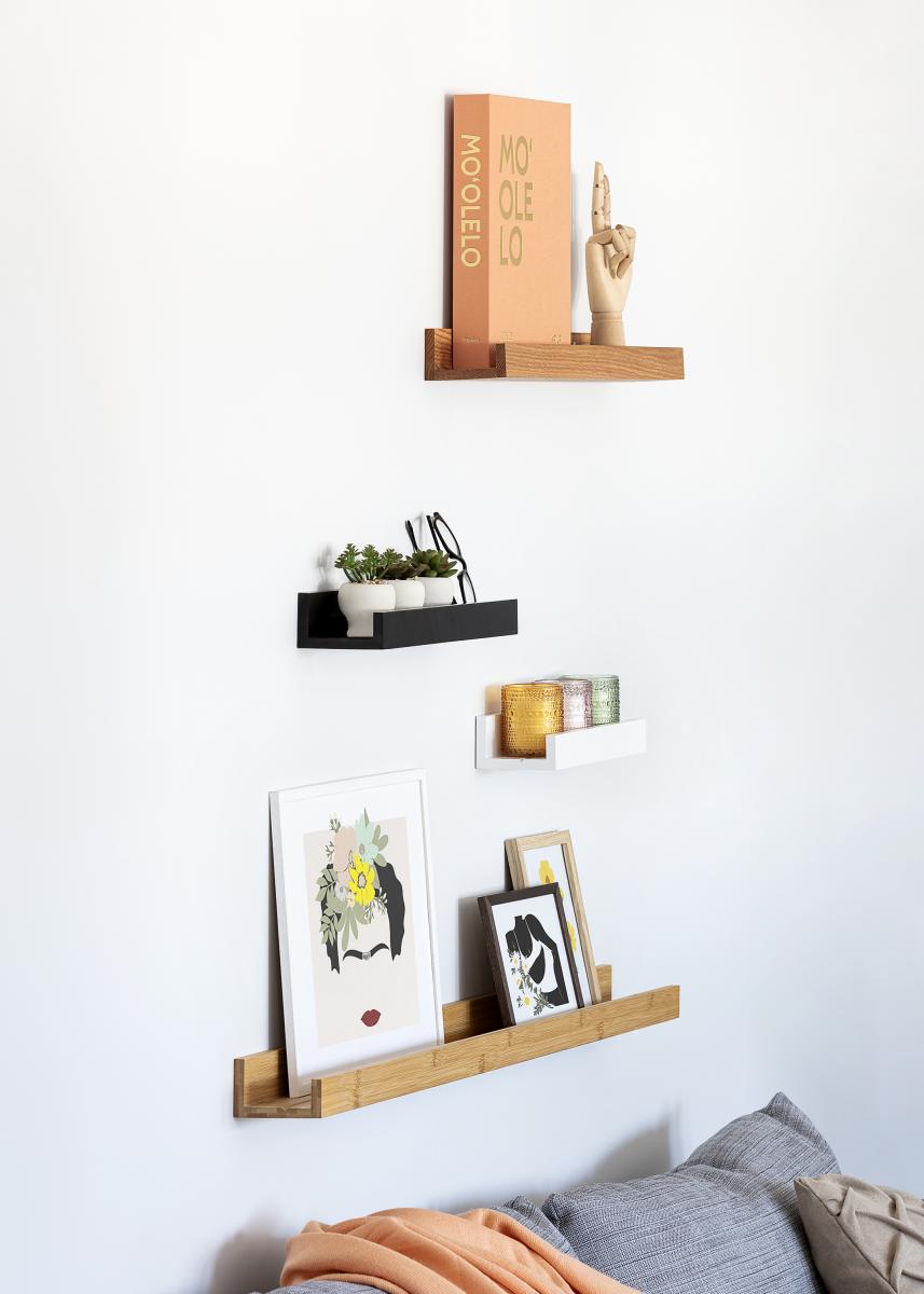 Visa och variera din väggkonst enkelt och snyggt med en elegant tavelhylla! Denna tavelhylla är tillverkad i MDF och är trendigt svartmålad med en fin, halvblank yta. Tavellisten har en stilren design med raka, enkla linjer och en minimalistisk känsla. Hyllplanet har en urfräst skåra i mitten som fungerar som stöd till dina tavlor och ger dem en snygg vinkel där de står lutande mot väggen.
