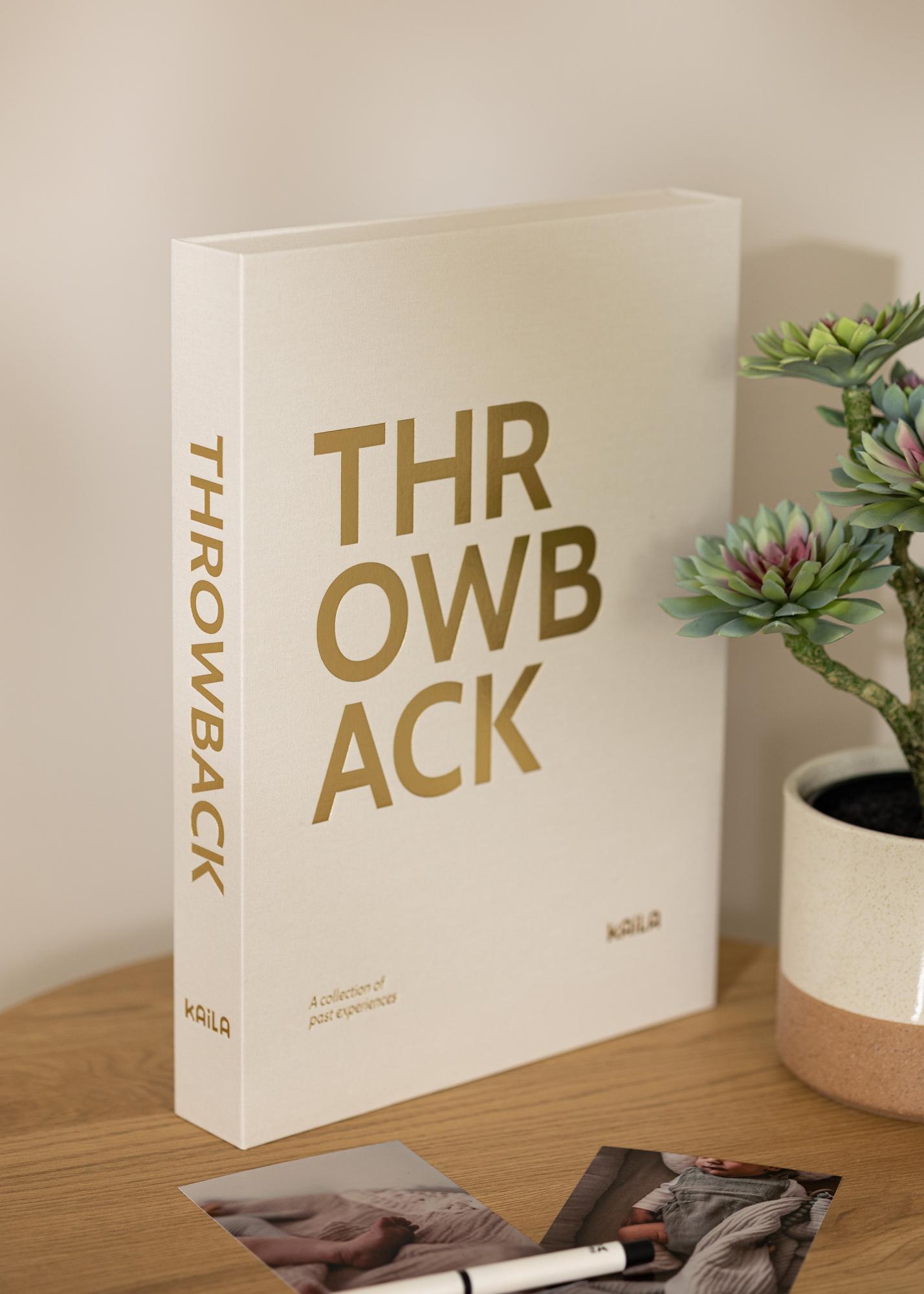 Albumet är stilfullt klätt i ljusgrå textil och på dess framsida och albumrygg sitter ett guldfärgat tryck med texten ”THROWBACK”. Albumtiteln kompletteras även med undertiteln ”A collection of past experiences” som står tryckt nere i det vänstra hörnet.